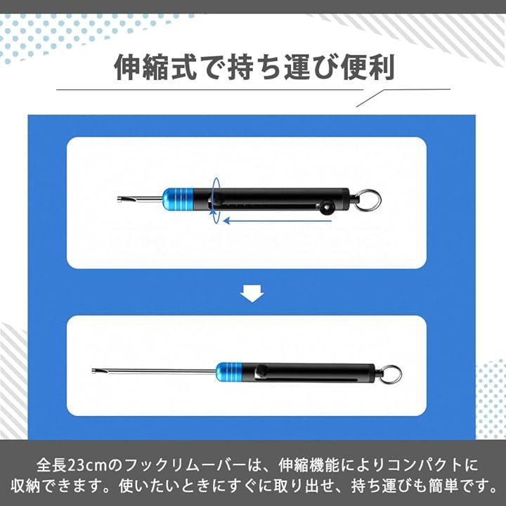 フックリムーバー 針外し 釣り針はずし ツール 軽量 伸縮 フックリリーサー
