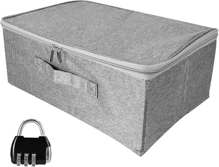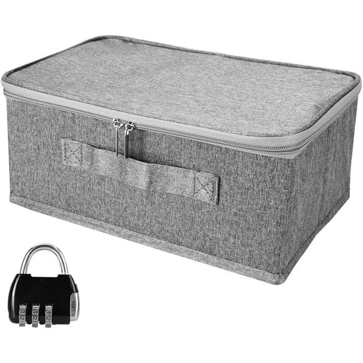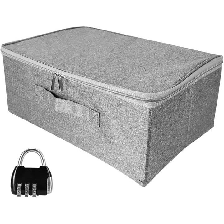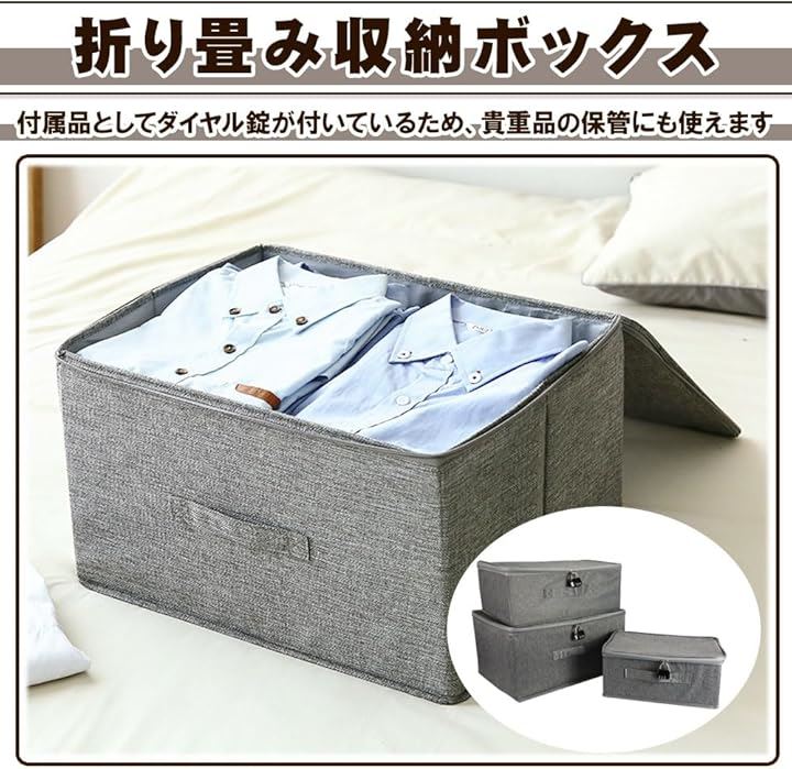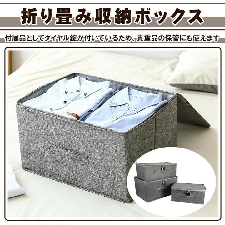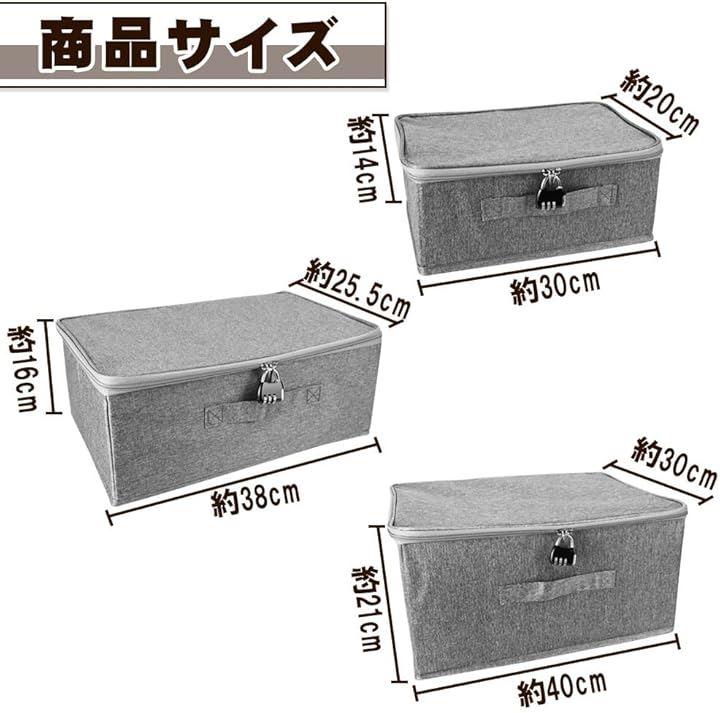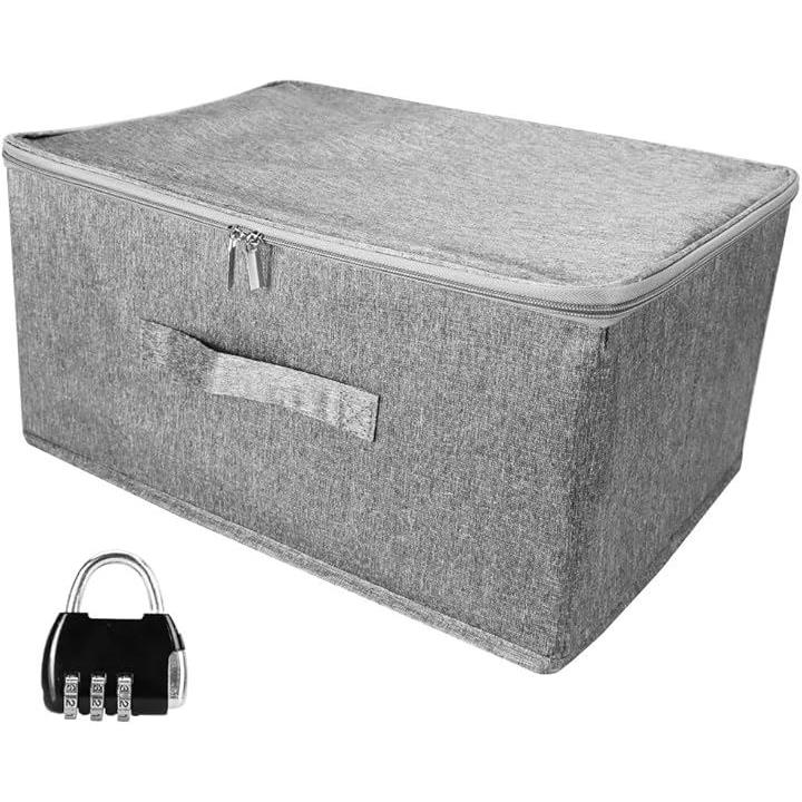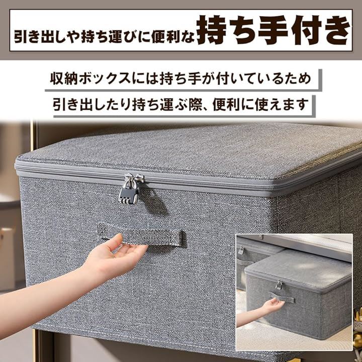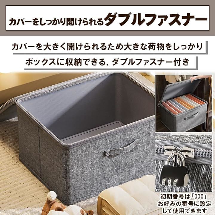折り畳み式収納ボックス 大容量 蓋付き ダブルファスナー 3桁ダイヤル錠 取っ手付き