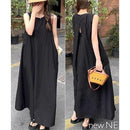 ニューネ背中開き ロング ワンピース ノースリーブ リゾート フレア 綺麗め 体型カバー 無地 ナチュラル