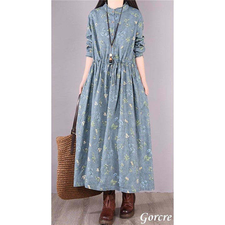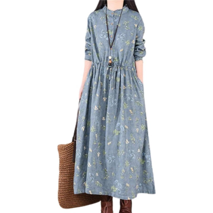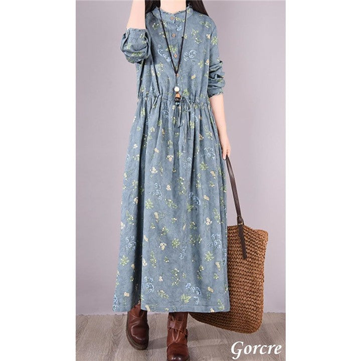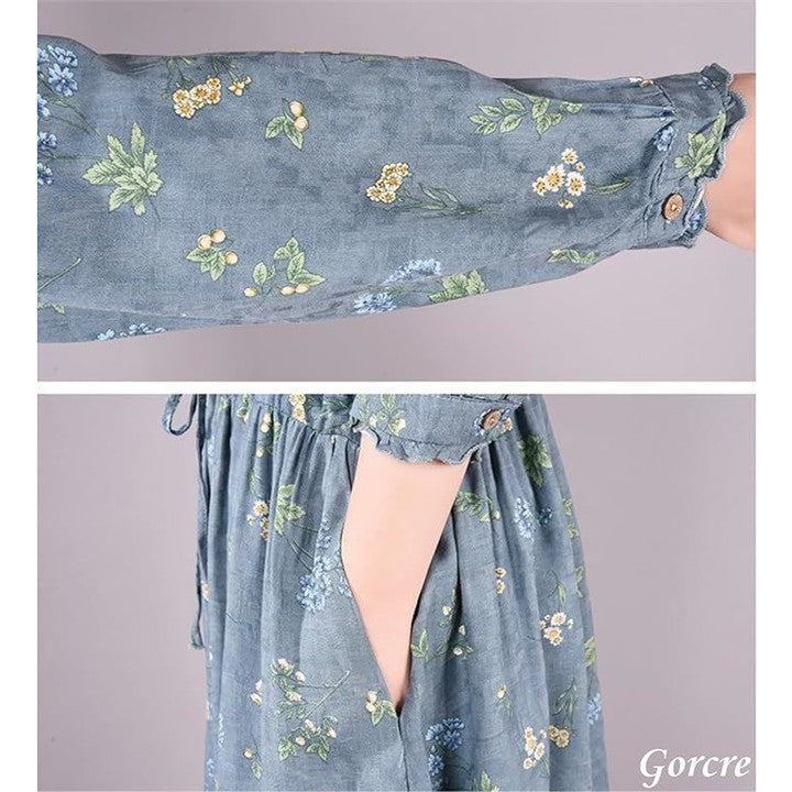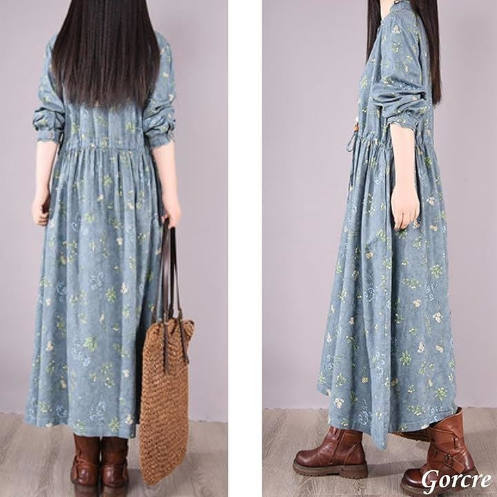 レトロ 総柄 ワンピース レディース 花柄 ハイネック フリル 上品 長袖 きれいめ ゆったり 細見え 体型カバー 大きいサイズ