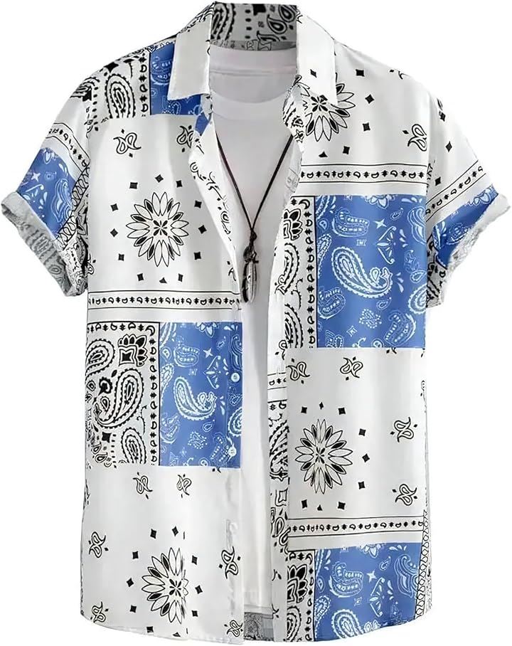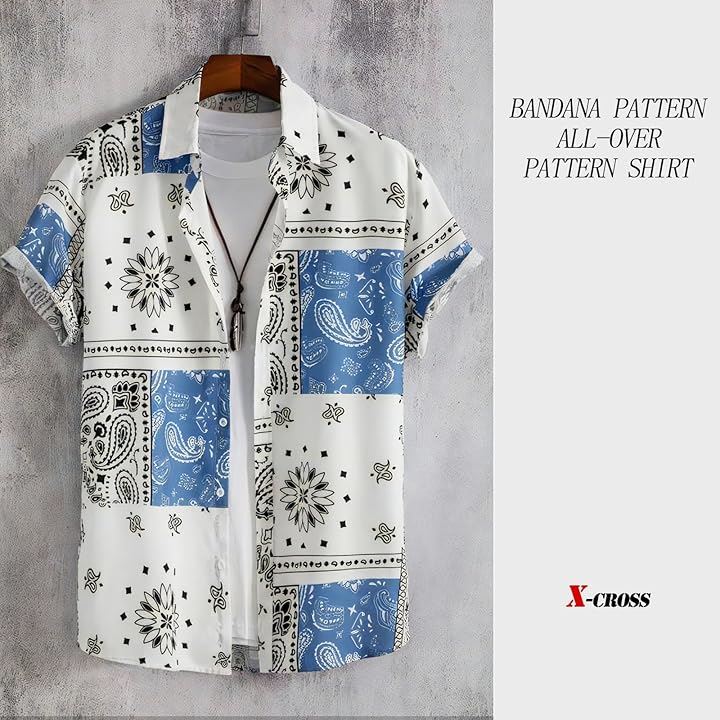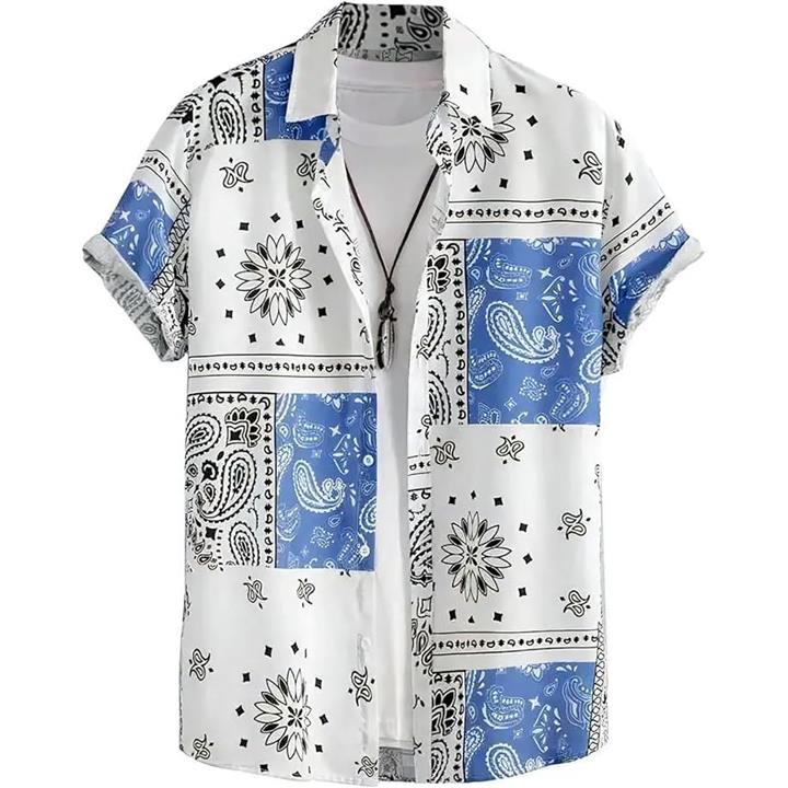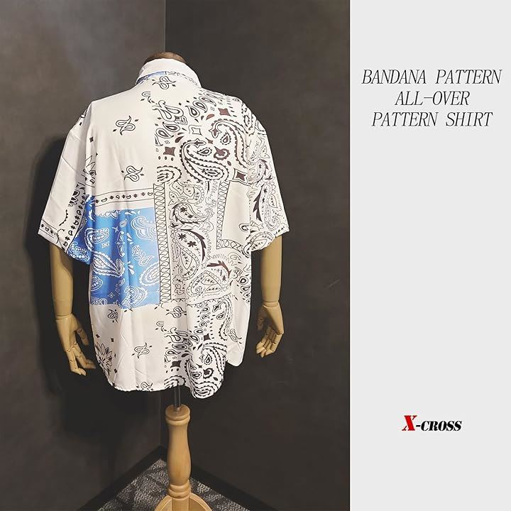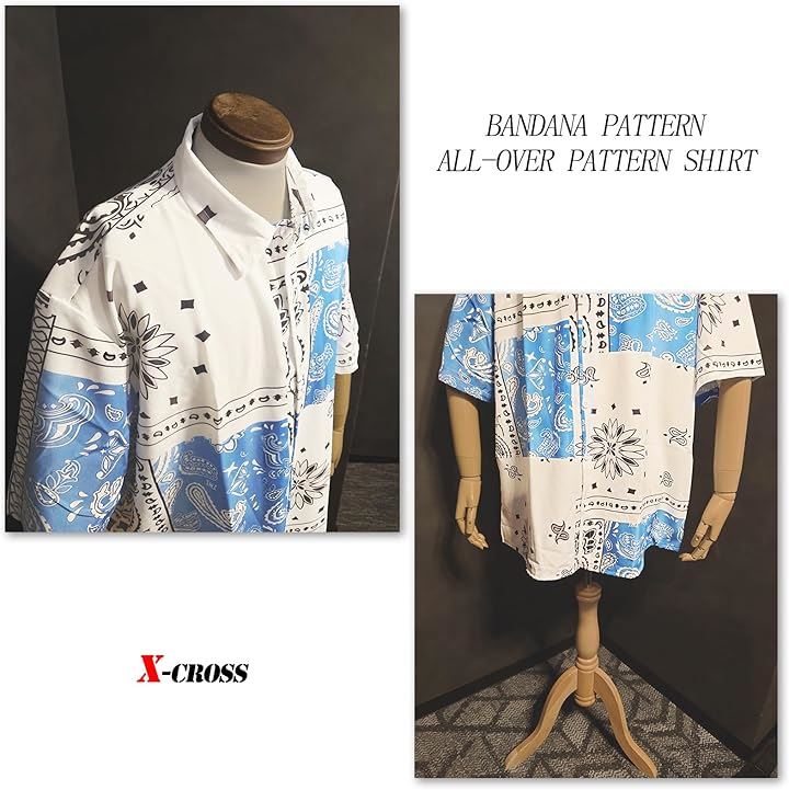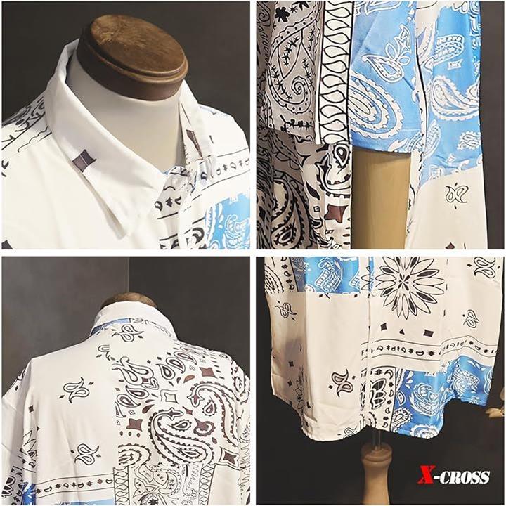 クロス 半袖シャツ メンズ 大きいサイズ カジュアル おしゃれ 夏服 バンダナ ペイズリー 柄 お洒落 外出 アウトドア ポリエステル 襟付き 前あき 涼しい ゆったり デザイン アメカジ