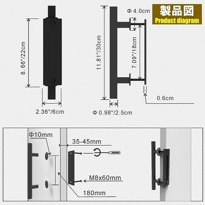 ドアハンドル 取っ手 おしゃれ 納屋 倉庫 レールゲート 炭素鋼 ドアノブ ツマミ 取手 交換 DIY