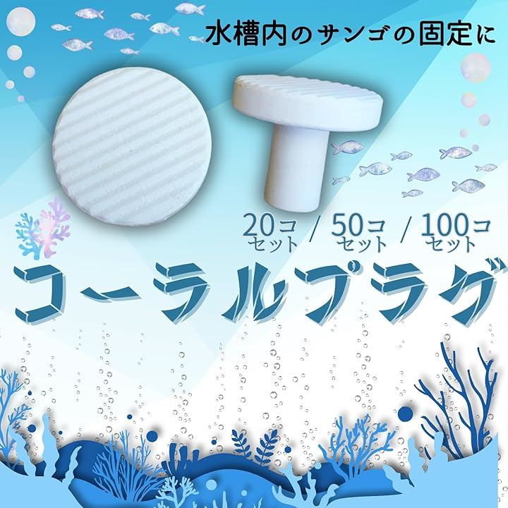 「商品仕様」 ・サイズ: 台座直径約23mm ・材質: 高品質セラミック ・カラー: ホワイト ・形状: T型スタンド ・セット内容: 20個、50個、100個セット ・用途: サンゴ固定、フラグ作成、増殖、培養、アクアリウムレイアウト、台座、海水・淡水両対応