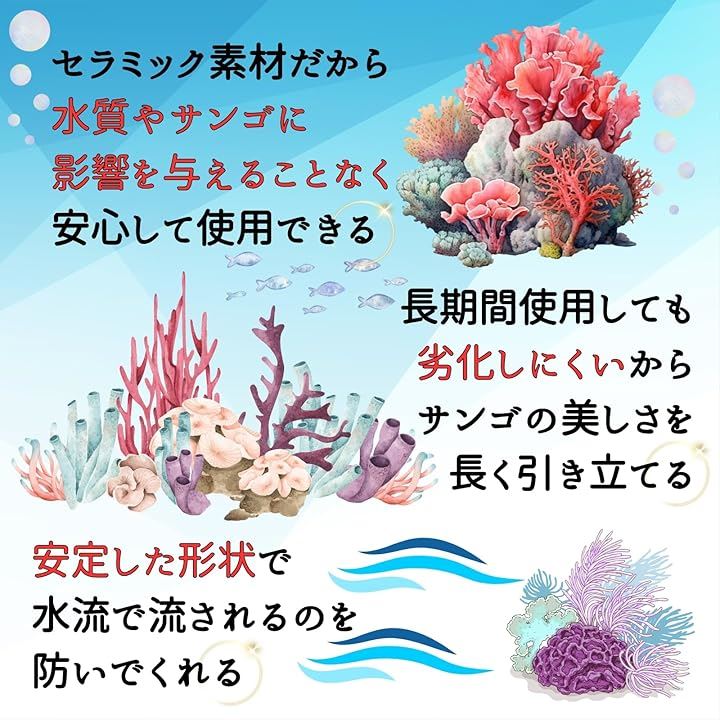 3. 水質に影響を与えない高耐久・安全なセラミック製 高品質セラミック素材は、海水・淡水環境において水質に一切影響を与えません。