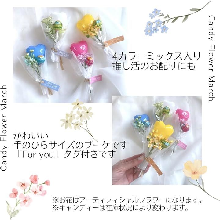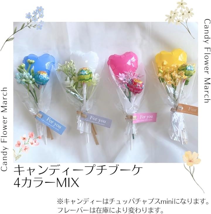 手のひらサイズのプチキャンディブーケ/4色展開・キャンディ付き・カラフルバルーン Mix 4本セット