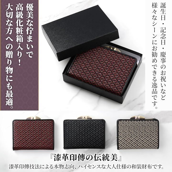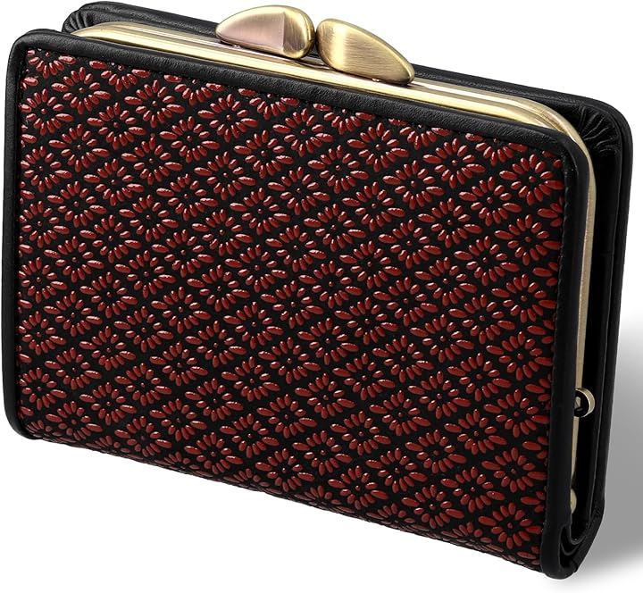 印伝 がま口 財布 菱菊 印傳 レディース 鹿革 本漆 小銭入れ 和柄 和装 職人 日本製 赤