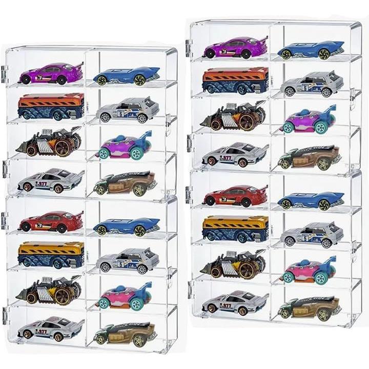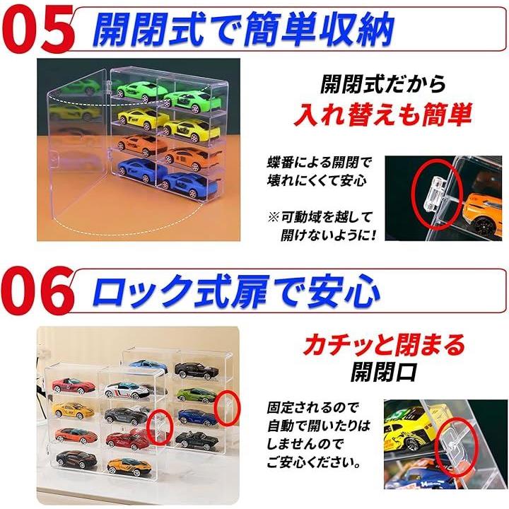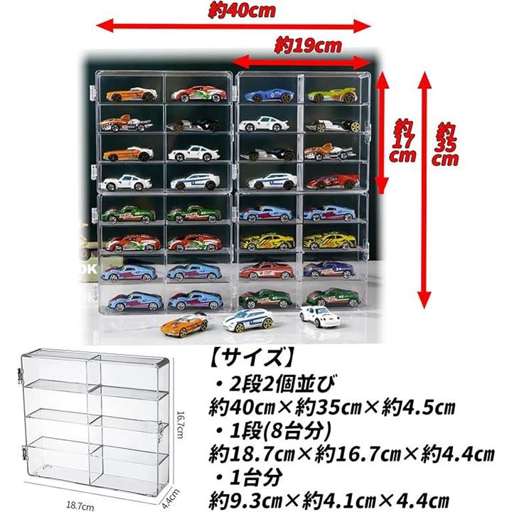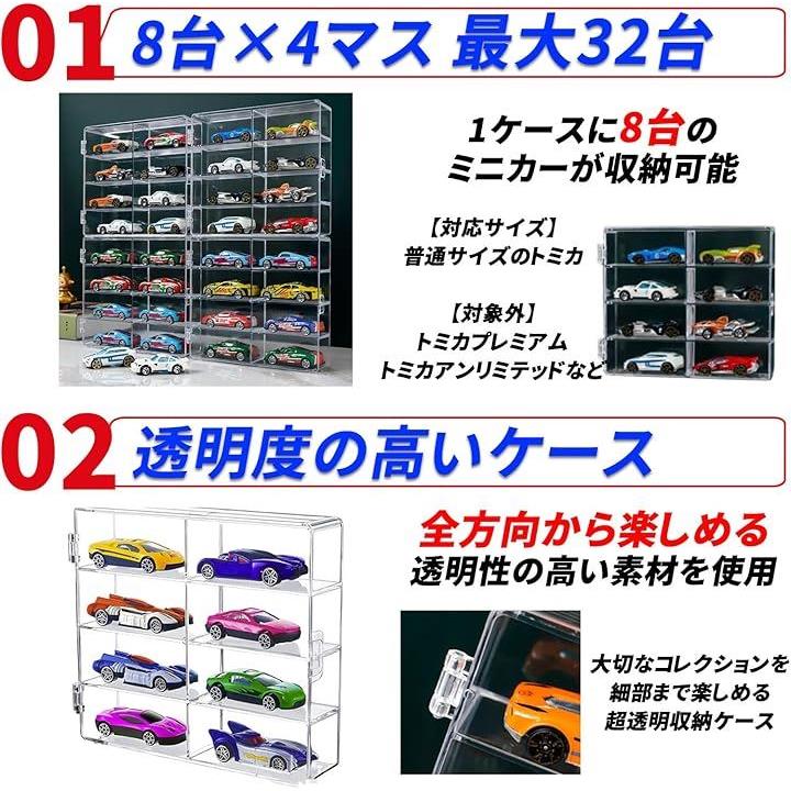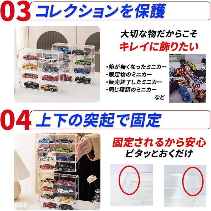 ミニカーケース 32台収納 ズレ防止シリコンシート付 1/64 コレクションケース 透明 スタッキング 防塵ロック扉