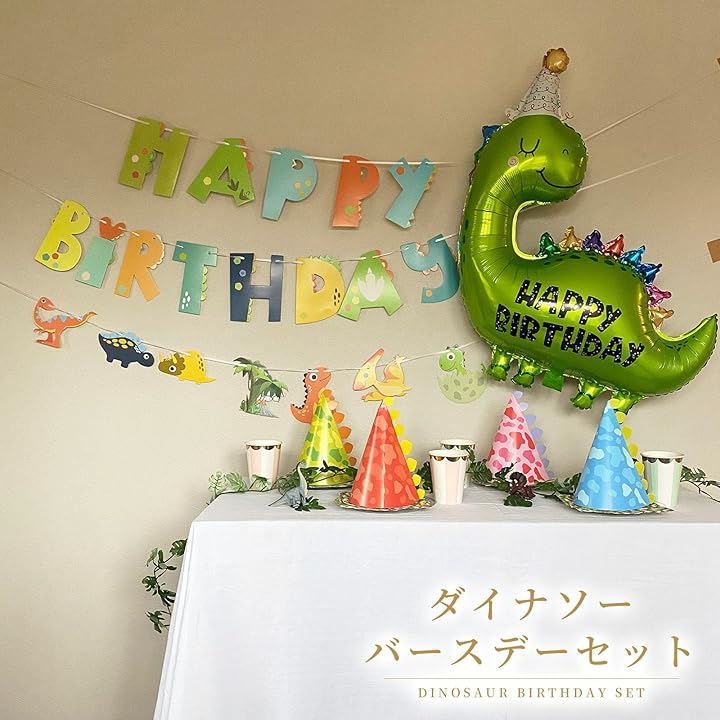 誕生日 飾り付け 男の子 帽子 ガーランド 風船 バルーン 恐竜 ダイナソー バースデー ハット a-b5858 帽子セット