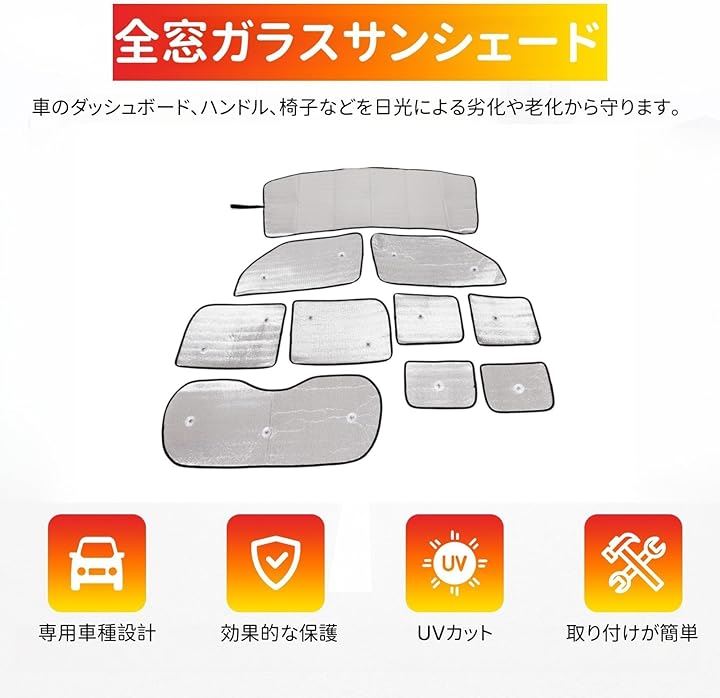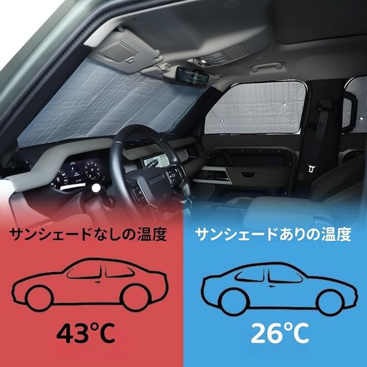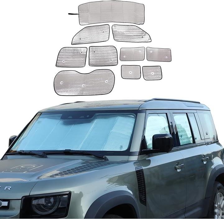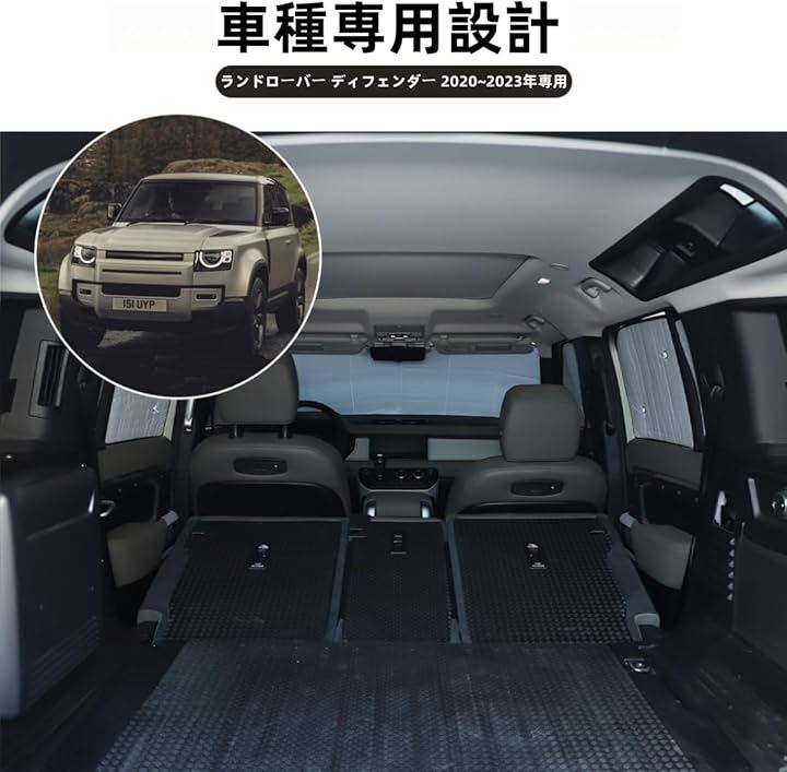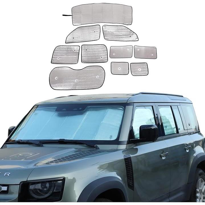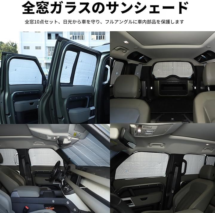 ランドローバー ディフェンダー 2020~2023年専用 全窓対応 遮光シェード フロントサンシェード サイドサンシェード UVカット 日よけ 車中泊 プライバシー フルセット 暑さ対策 断熱 車用 カーシェード 紫外線 内装パーツ 10点セット