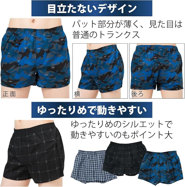 いつも清潔で快適な履き心地を提供し、通常のトランクスと変わらない見た目で、人目を気にせず使用できます。