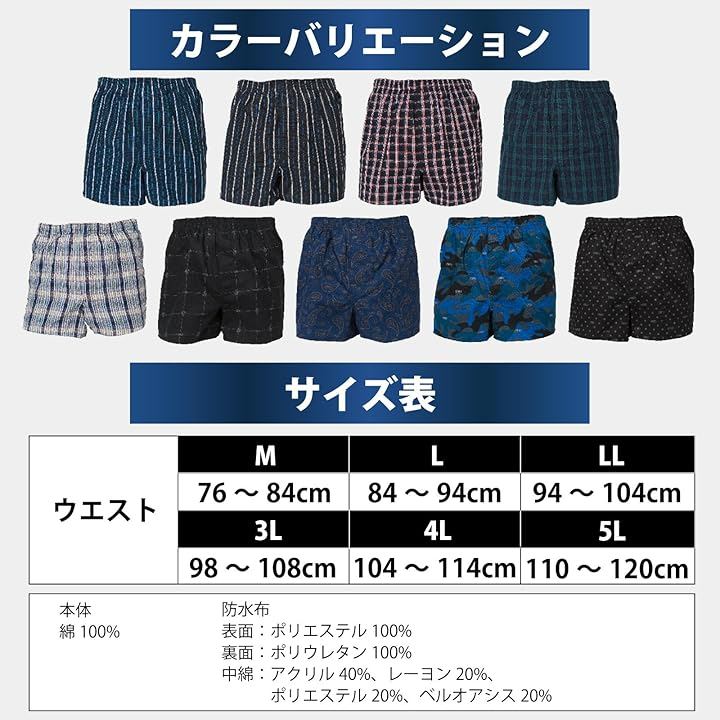 [Y's factory] メンズ トランクス ちょい漏れ 対策 ランダム 2枚セット前開き 綿 100% 抗菌 消臭 日本製 防水布 吸汗速乾 通気性 シニア 介護 大きいサイズ 紳士 下着 |