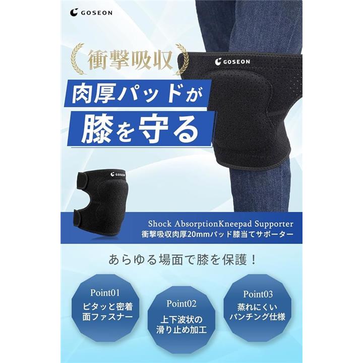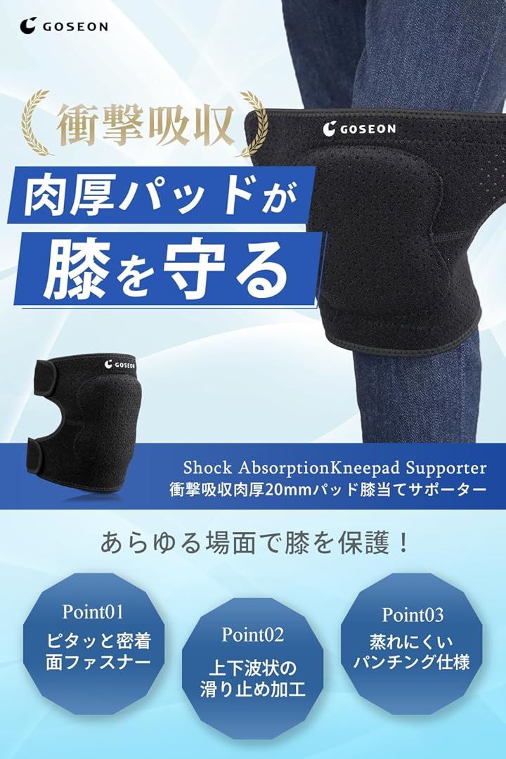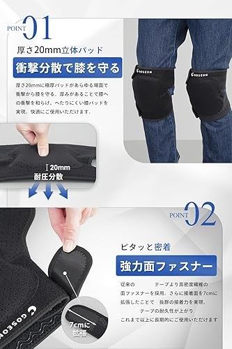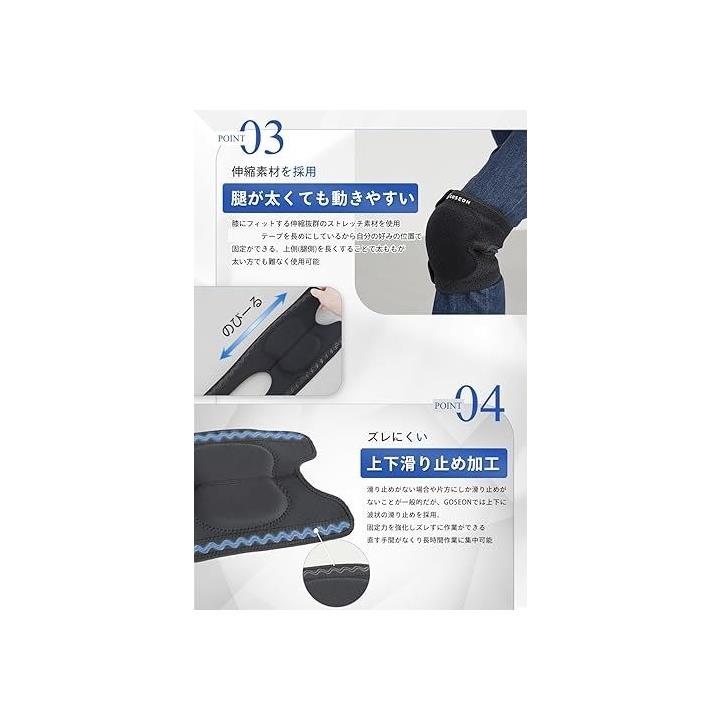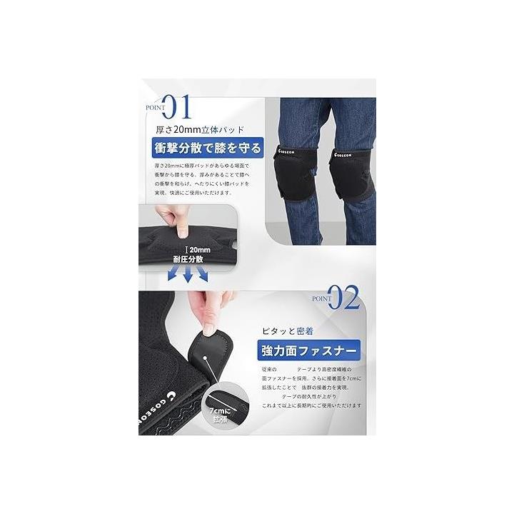 膝当て 作業用 肉厚20mmパッド ズレにくい 強力面ファスナー採用 上下滑り止め加工 膝パッド 膝サポーター 膝当てサポーター プレミアム 両膝セット ニーパット 保育 介護 掃除 屋内外使用可能 男女兼用