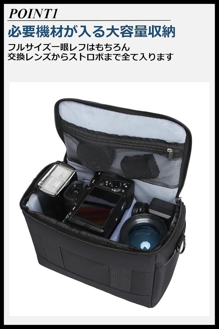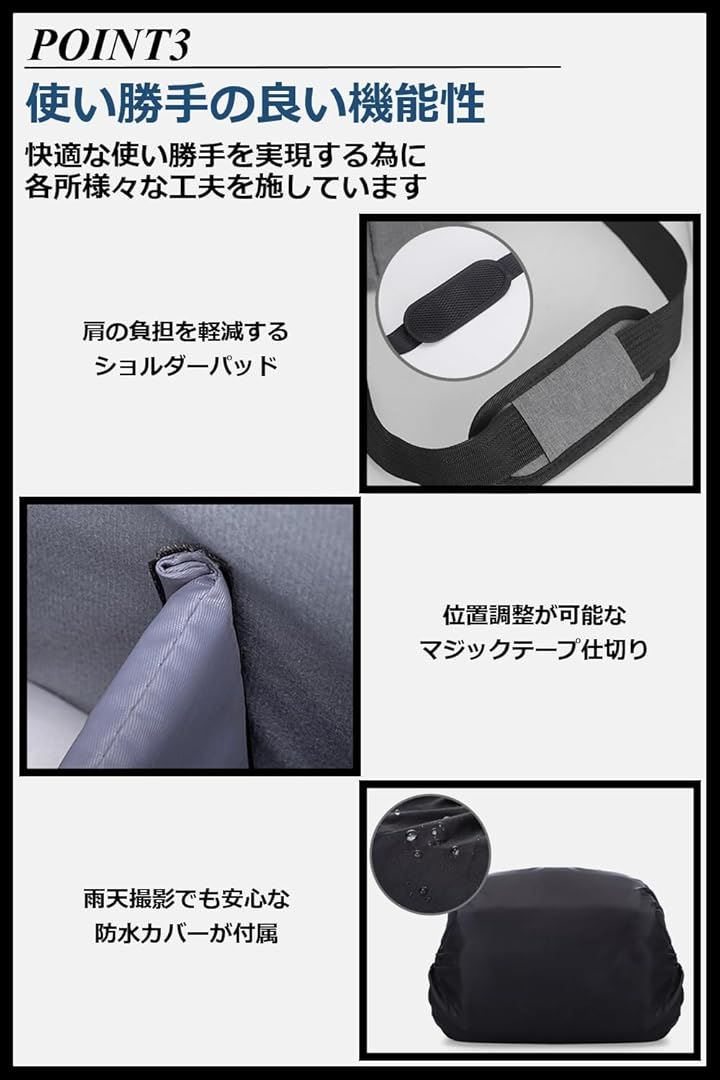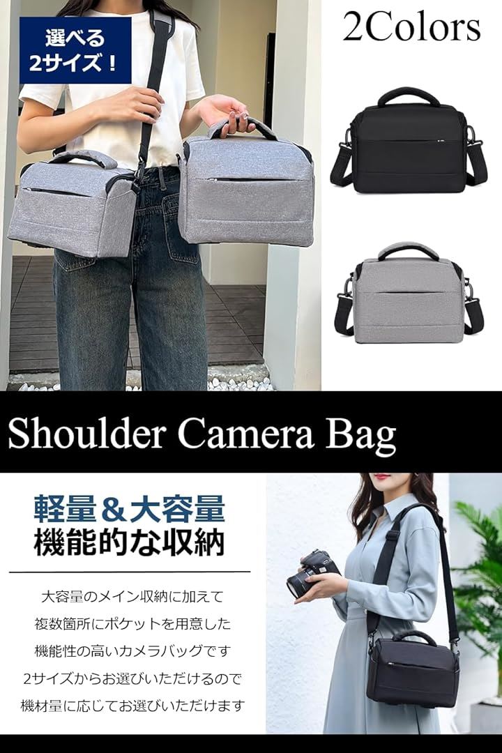 カメラバッグ ショルダー 大容量 軽量 肩掛け 斜め掛け 一眼レフ ミラーレス おしゃれ 仕切り調節可能 防水カバー