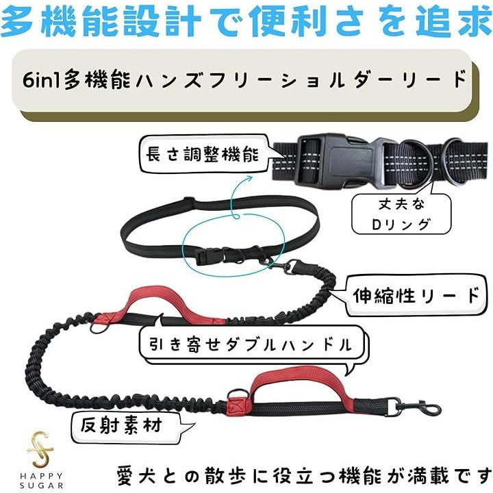 犬 リード ショルダーリード 肩掛け 伸縮 反射材 6in1多機能 斜めがけ 長い ペット 小型犬 中型犬 散歩 ハンズフリー