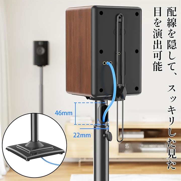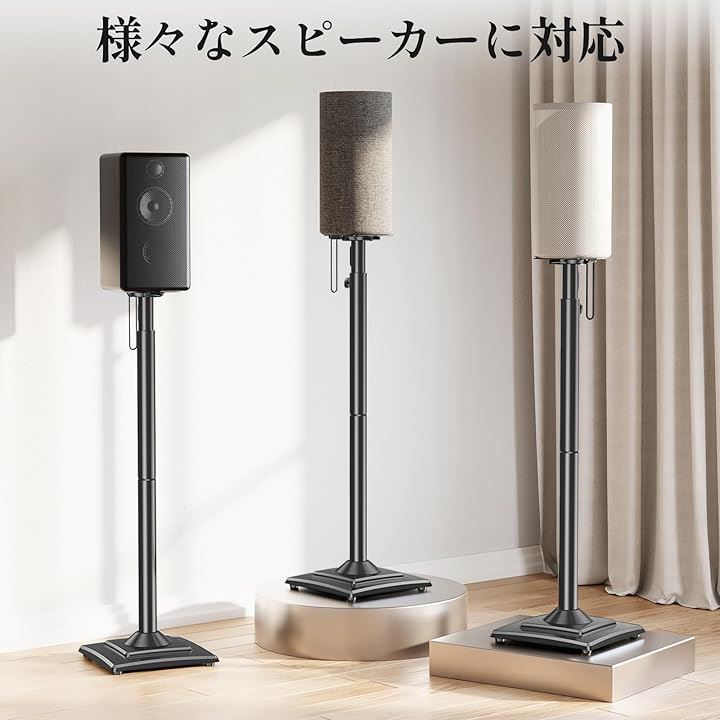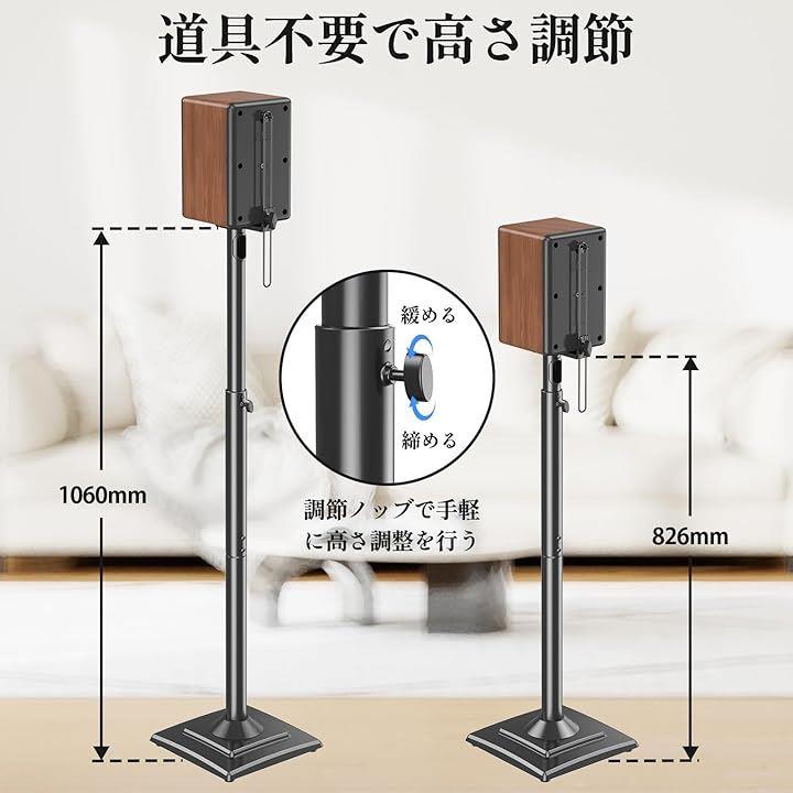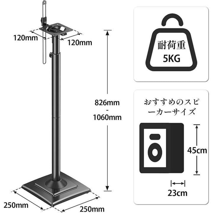 スピーカースタンド スピーカーマウント 耐荷重5kg 中小型スピーカー 高さ調整可能 ポール型 本棚スピーカー用 2本セット 日本語説明書付き