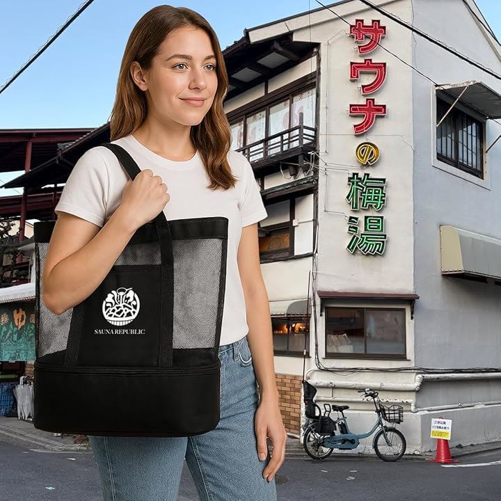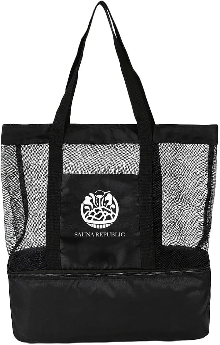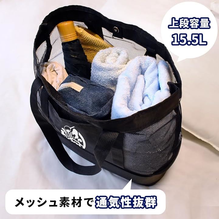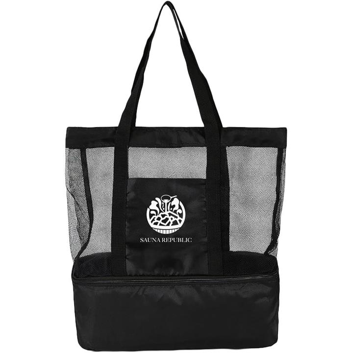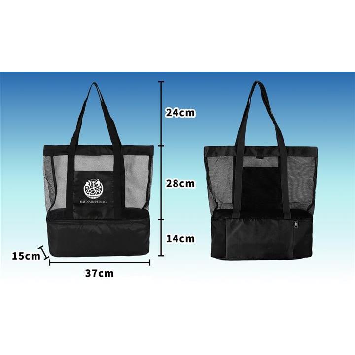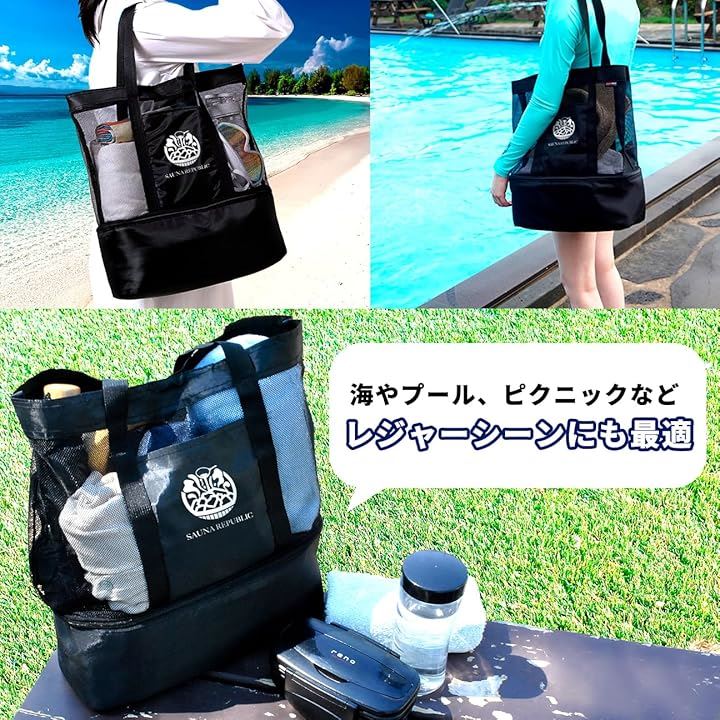 保冷トートバッグ メッシュ 軽量 大容量 2層構造 底部保冷ポケット付 サウナバッグ 銭湯 プール ジム アウトドア 仕切り・防水加工 メンズ レディース おしゃれ 23.2L