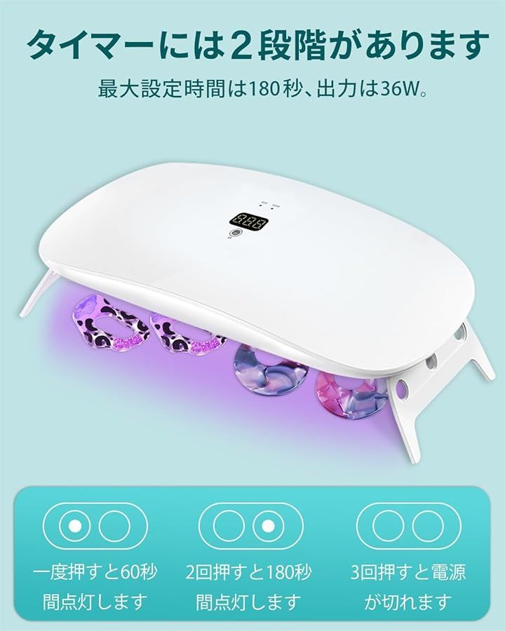 UVライト レジン用 硬化ライト 36W LEDネイルライト 折りたたみ式 ジェルネイル UVレジンライト UVランプ 樹脂硬化用 UVレジンキット ジュエリー作り DIY クラフト