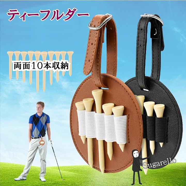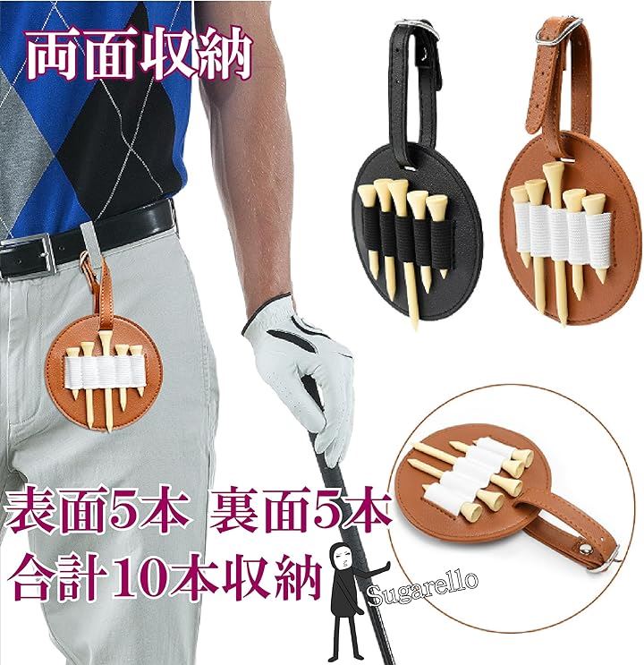 ゴルフティーホルダー 両面 10穴 大容量 ラウンド用品 ティー挿し ラウンドアクセサリー ティー5本付き