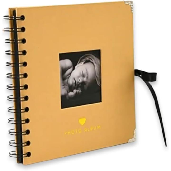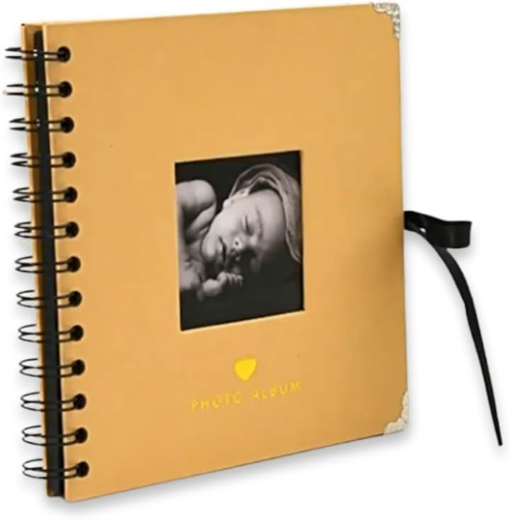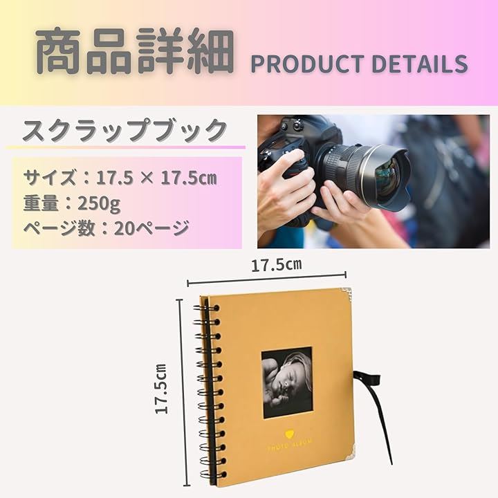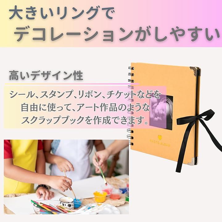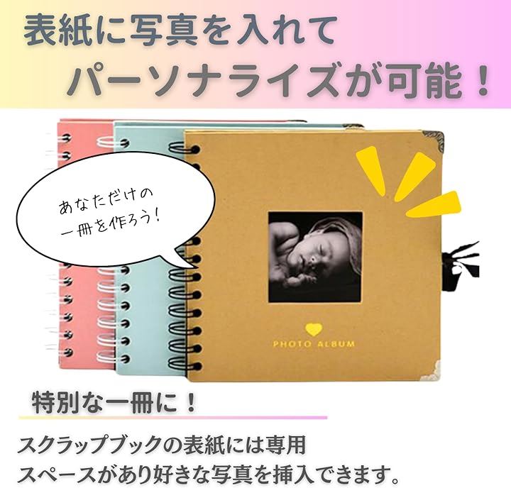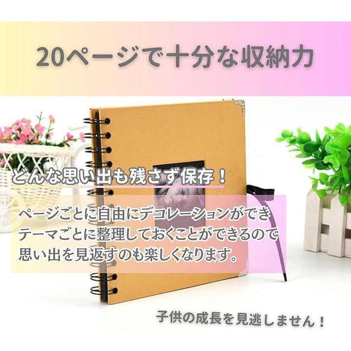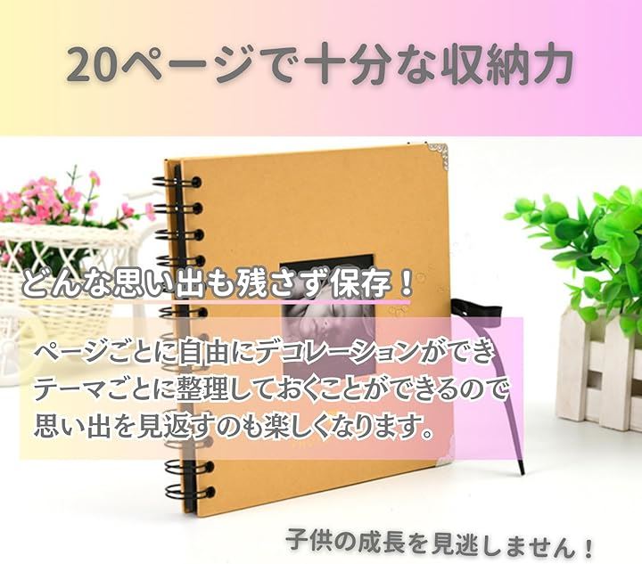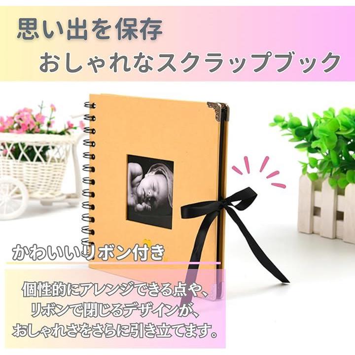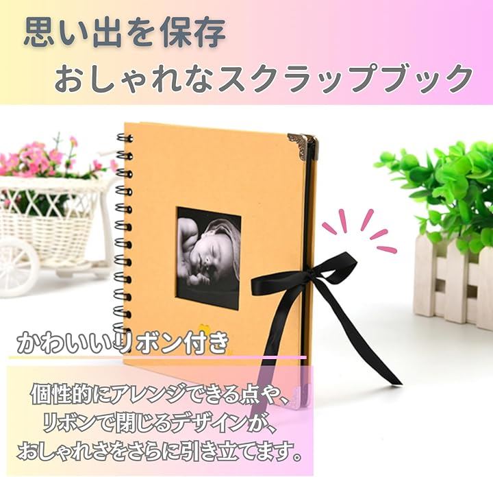 スクラップブック 手作りアルバム 台紙 貼るタイプ フォト 写真 子供 赤ちゃん 正方形 リボン付き