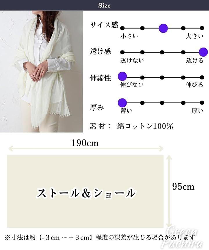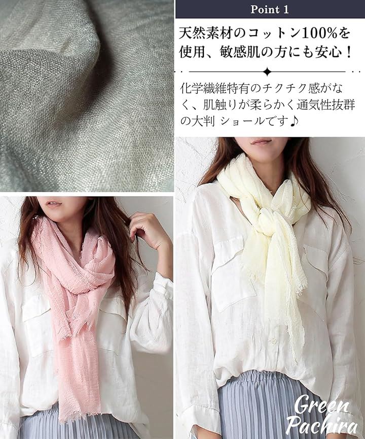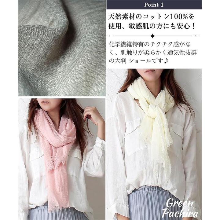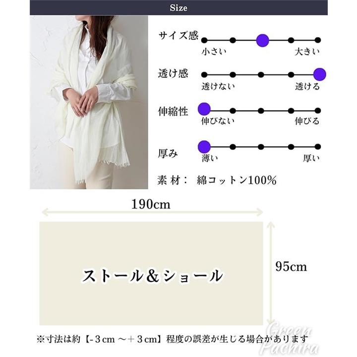 [グリーンパキラ] ショール 大判 ストール レディース 綿100% コットン UVカット 薄手 無地 柔らかい 結婚式 冷房対策 贈り物 母親 誕生日プレゼント 実用的 日焼け対策 スカーフ シフォン 首元カバー おしゃれ きれいめ ドレスの上に羽織るもの 肩掛け シンプル |