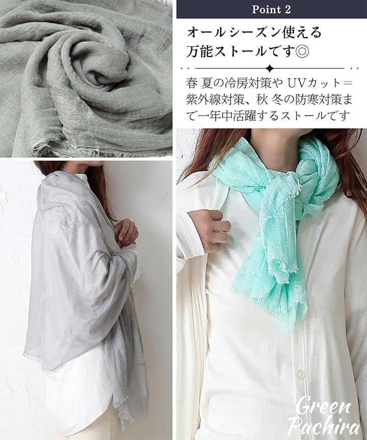 「 軽x薄x柔 ストール」オールシーズン使えるストールです。