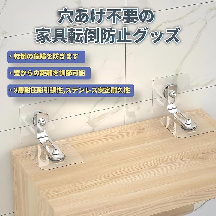 12点 家具転倒防止グッズセット 強力タイプ 耐震 Lストッパー 穴あけ不要 地震対策 固定シール ステンレス鋼 棚 食器棚 チェスト テレビ 転倒防止に使用 小型 軽量の家具類 防災グッズ