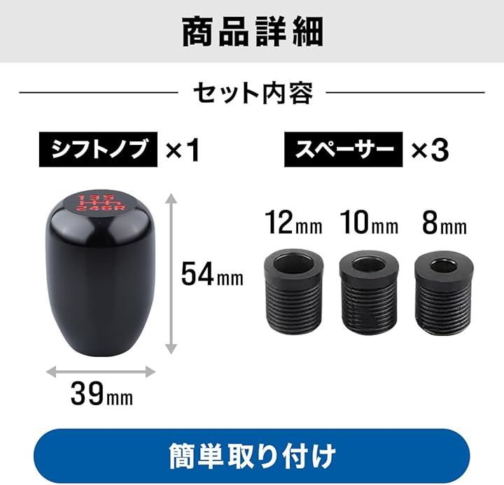 互換品シフトノブ MT 車 マニュアルシフトノブ アルミ 変換アダプター付き