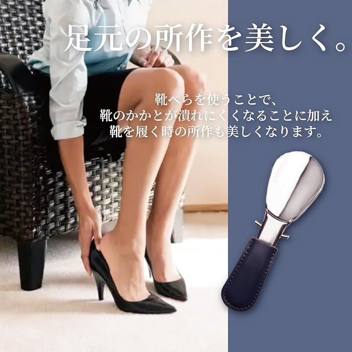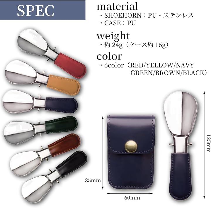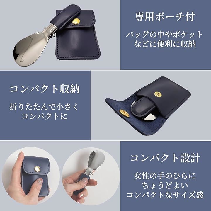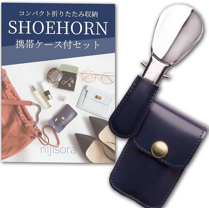 NIJISORA 靴ベラ 携帯 靴べら かわいい 折りたたみ シューホーン ケース付き ネイビー