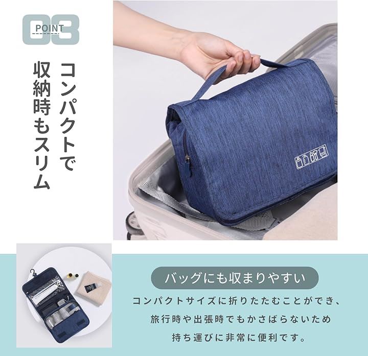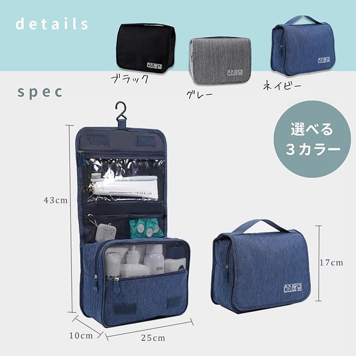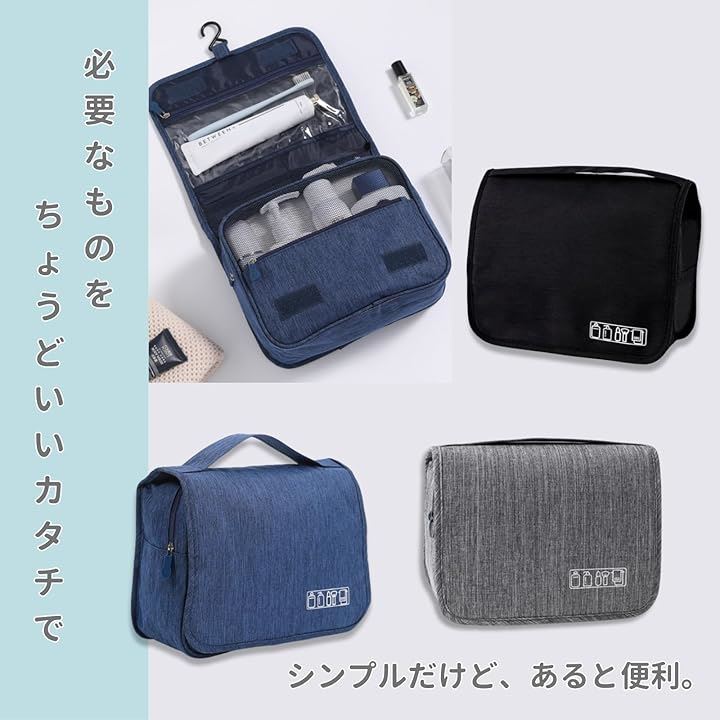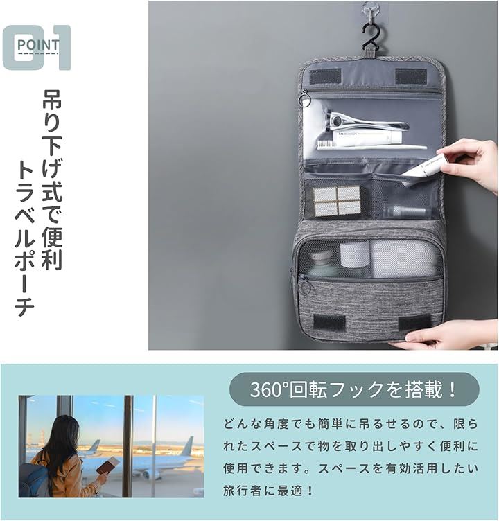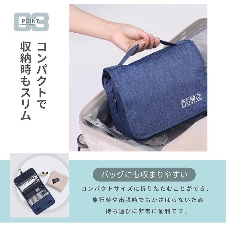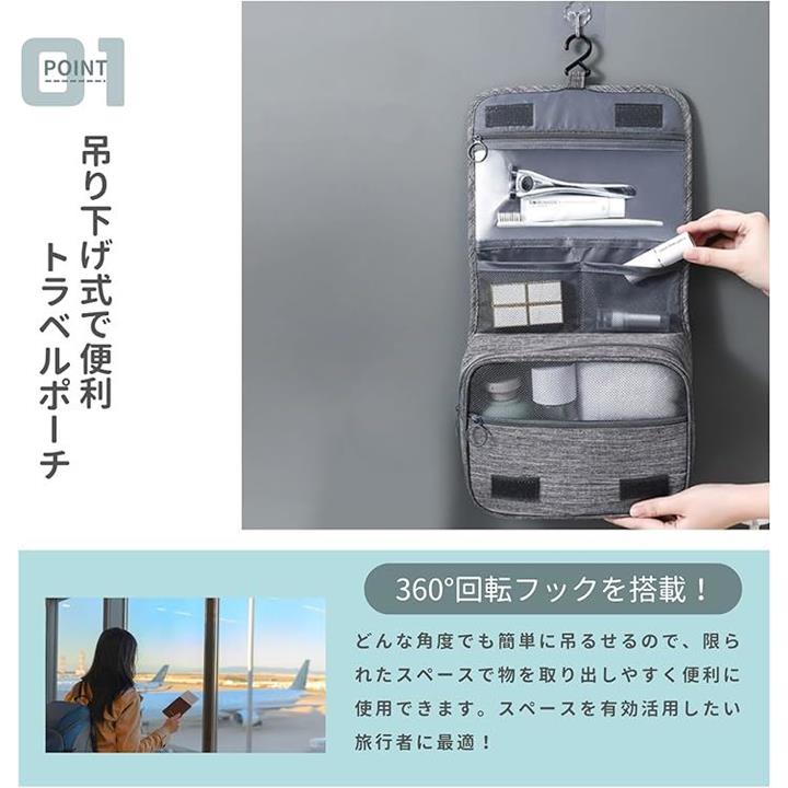 トラベルポーチ 化粧ポーチ メイクポーチ 大きめ 吊り下げ 旅行用 洗面用具 トイレタリーバッグ 防水 フック付き