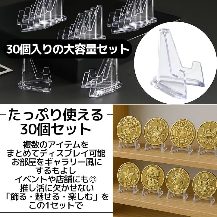 メダルスタンド ディスプレイスタンド 透明 アクリル 缶バッジ コイン トレカ 小物 展示用スタンド 30個セット