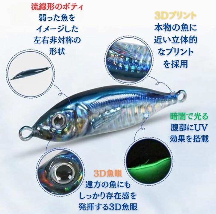 メタルジグ 4個セット 3Dプリンタ ショアジギング 釣り道具 魚 釣り具 ルアー 爆釣 アウトドア 餌 サカナ 海釣り