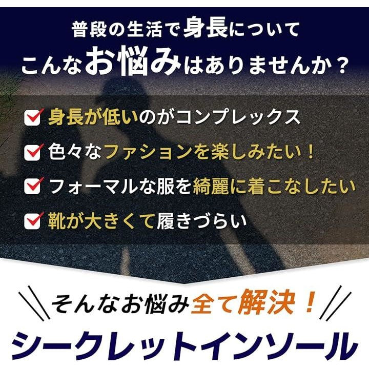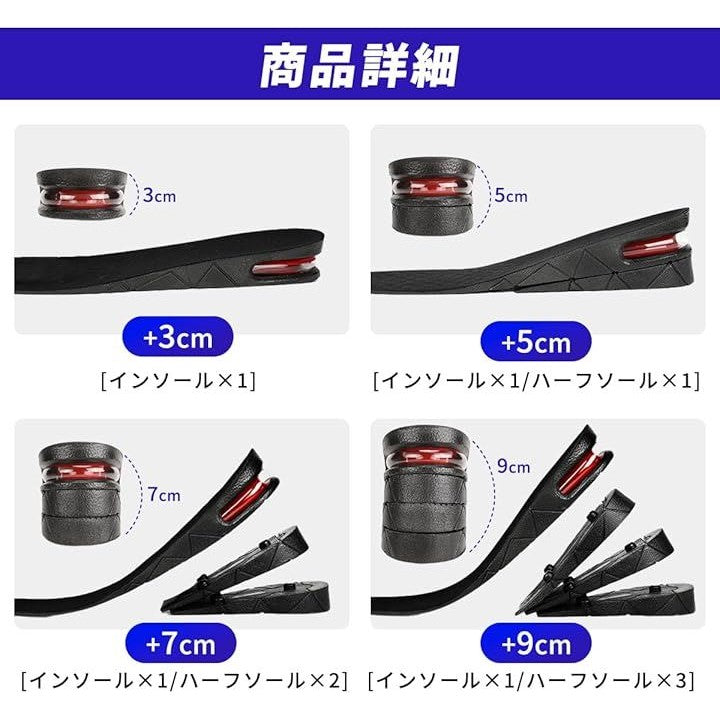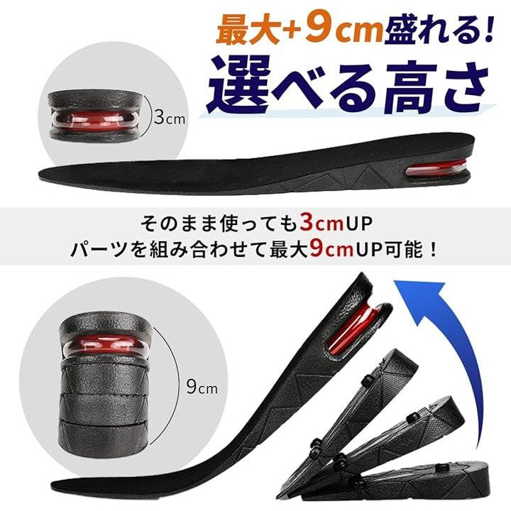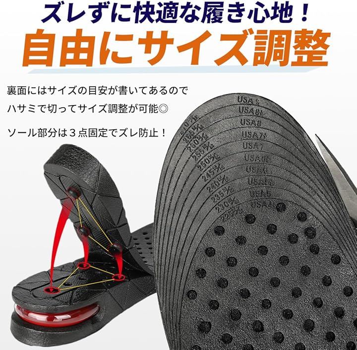 インソール シークレット 背が高くなる 9cm 中敷き 衝撃吸収 厚底 上底 靴 身長アップ エアーソール スニーカー 大きめ カット