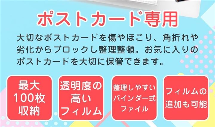 ポストカードホルダー ファイル 横入れタイプ バインダー式でフィルムの追加もできる