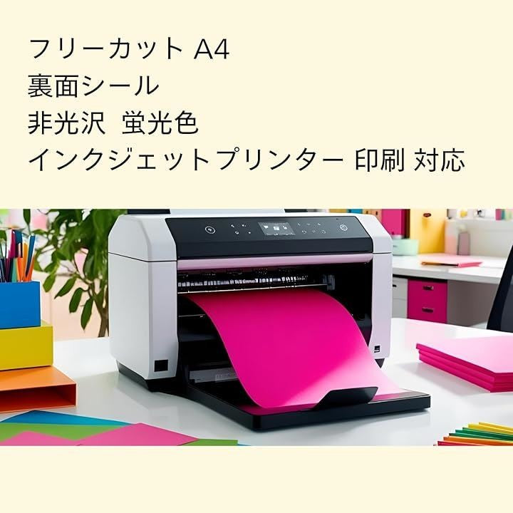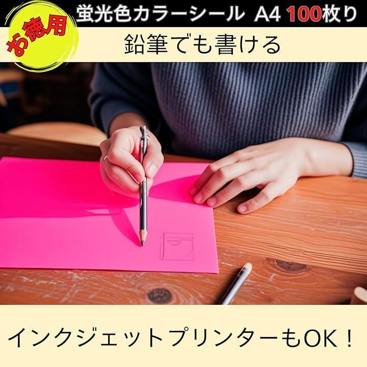 カラーシール A4 カラーシート お徳用 大袋 粘着 うちわ 蛍光色 カラーシール用紙 フリーカット 印刷 100枚入り