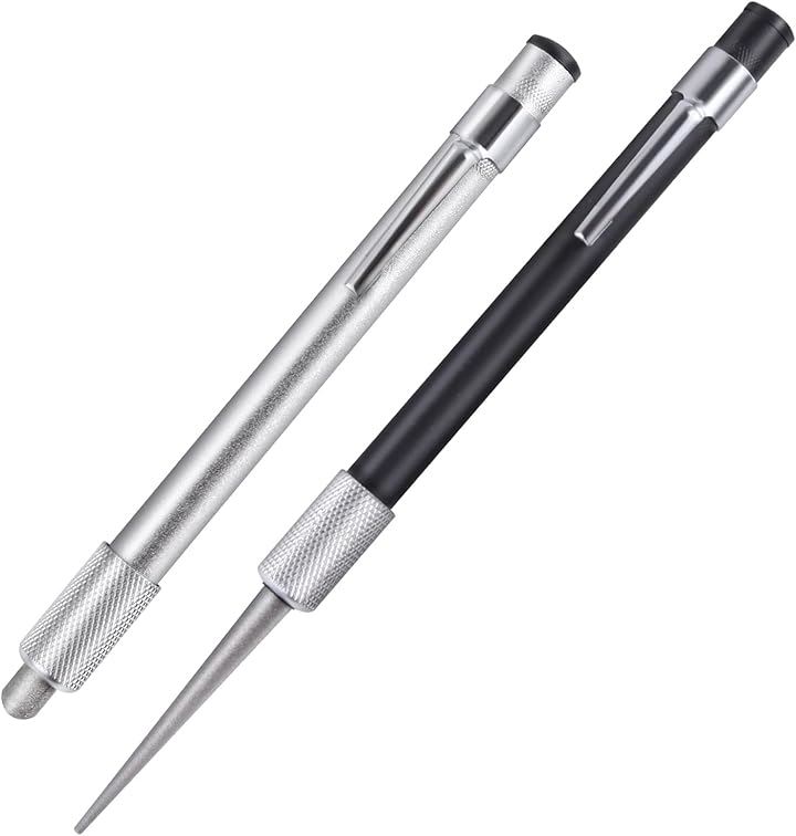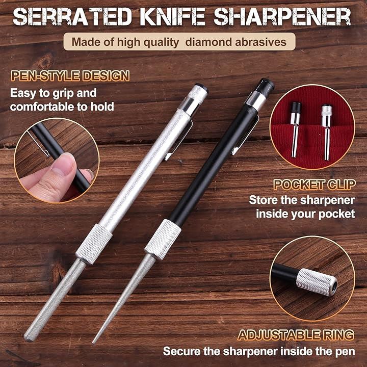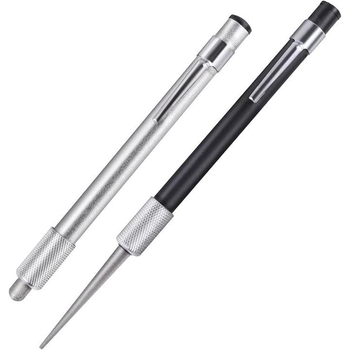 2本セット ペン型ダイヤモンドシャープナー ダイヤモンドリトラクタブルナイフシャープナー ギザギザナイフシャープナー 包丁とぎ棒 多機能研ぎ器 棒砥石 操作簡単 研ぎ棒 1丁4役 平 半丸 先細 V溝 ブラック シルバー