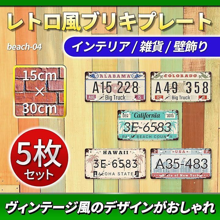 ナンバープレート ブリキ看板 サーフ ビーチ インテリア アメリカン 壁飾り ボード 西海岸 ライセンスプレート ヴィンテージ風