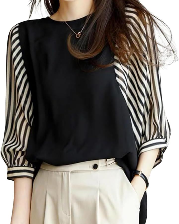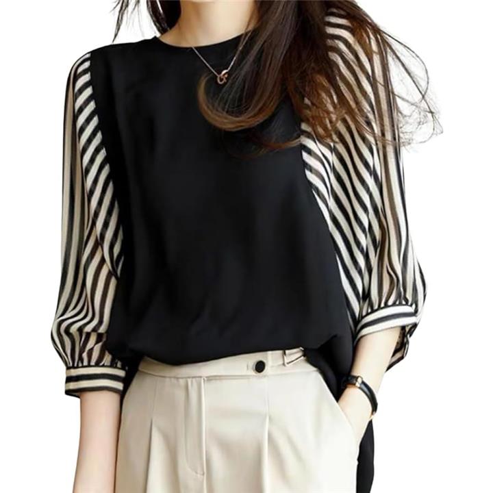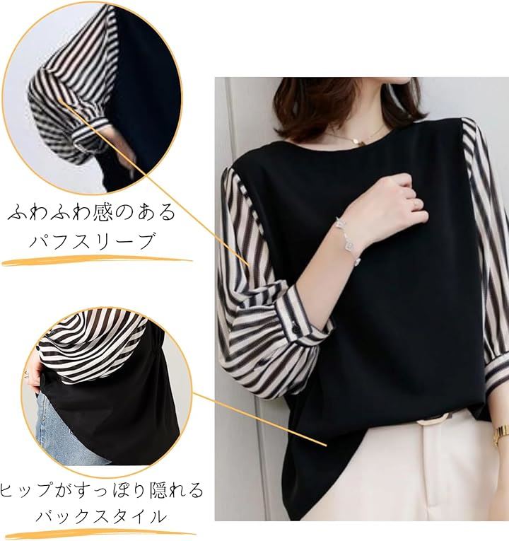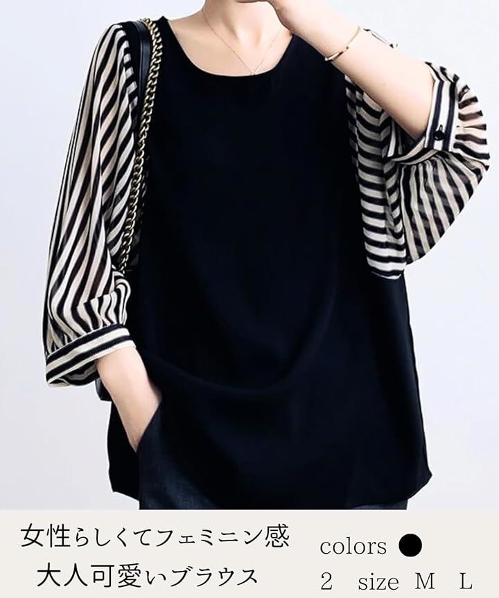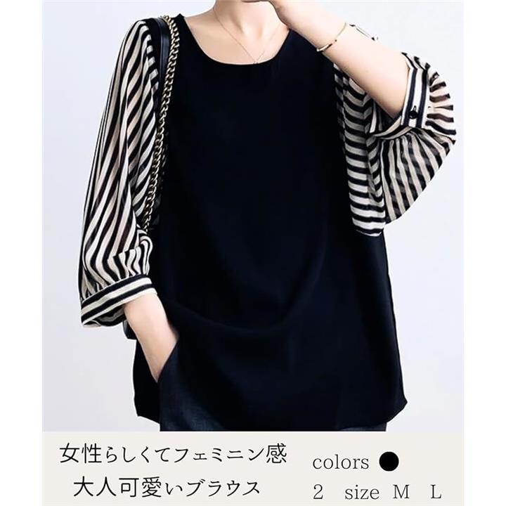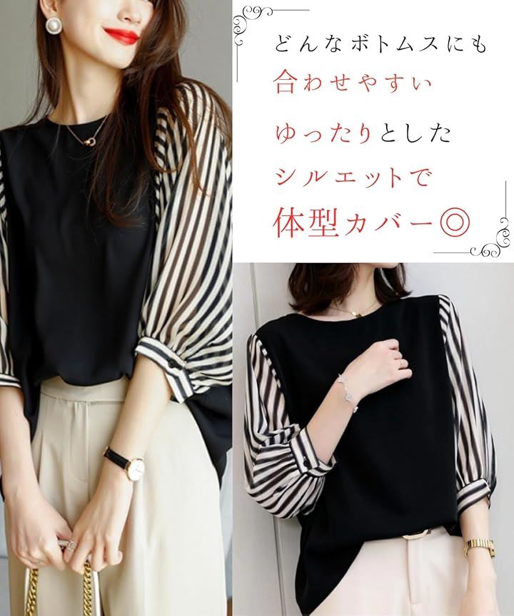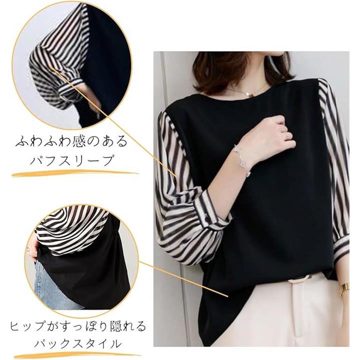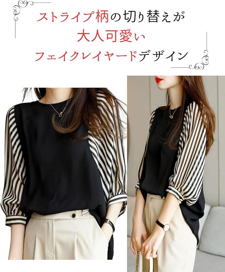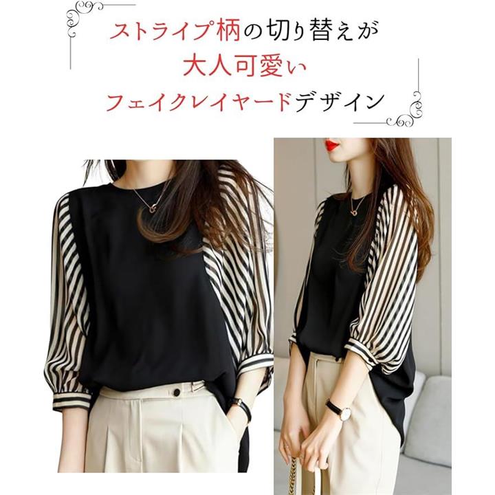 七分袖 レディース カットソー オフィス オフィスブラウス 7分袖 7部袖 シャツ 長袖 服レディース きれいめ シャツブラウス ストライプ