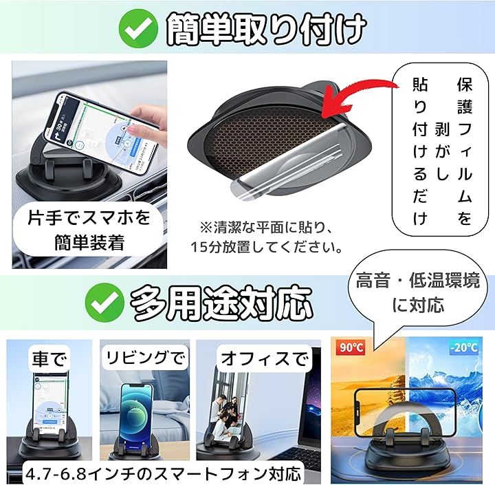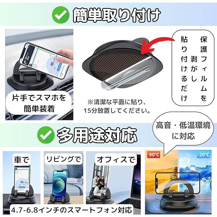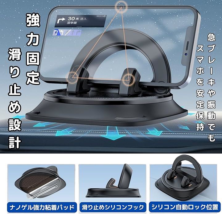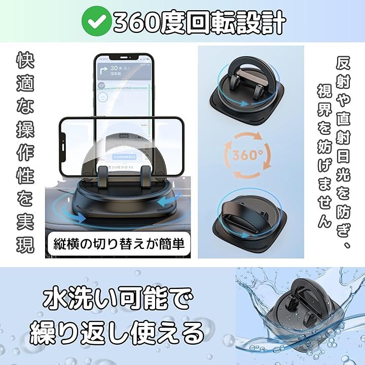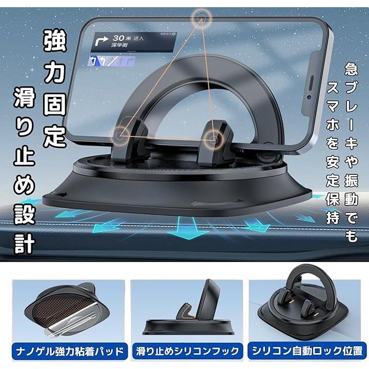 スマホホルダー 車 ダッシュボード スマホスタンド 回転可能 手帳型 対応 シリコン製 滑り止め 脱着簡単 iPhone Android