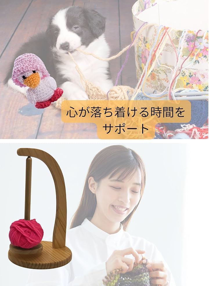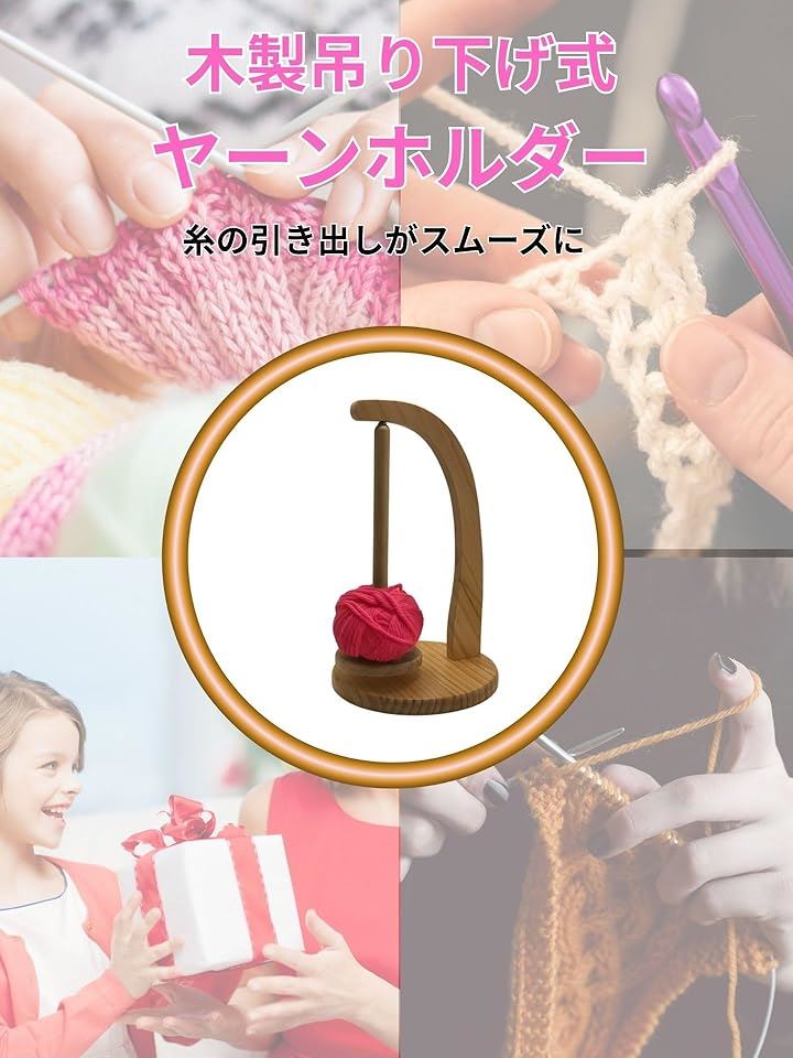 木製 ヤーン 毛糸 ホルダー 吊り下げ スタンド 回転 玉巻き器 糸巻き機 編み物 道具 手芸