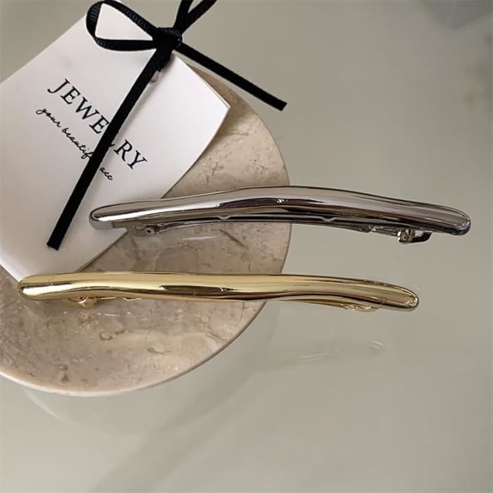 ヘアアクセサリー レディース バレッタ ヘアクリップ 大きめ メタル セミマット 細い ロング スティックバレッタ シンプル