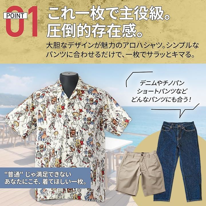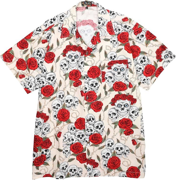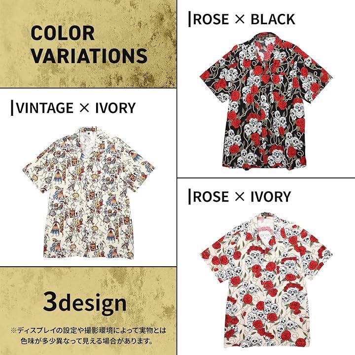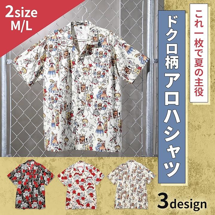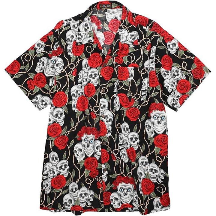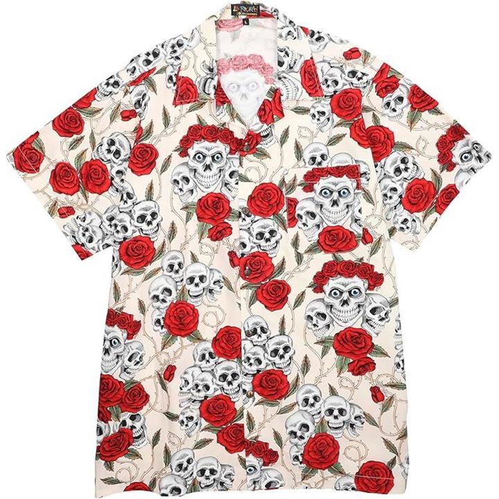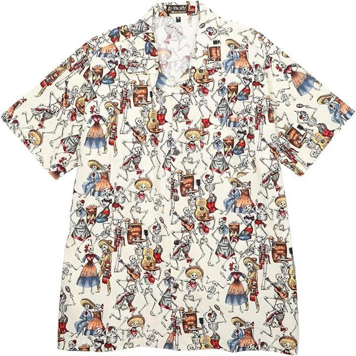 アロハシャツ ドクロ柄 一枚でキマる派手アロハ メンズ レディース ハワイアン 開襟シャツ 柄シャツ