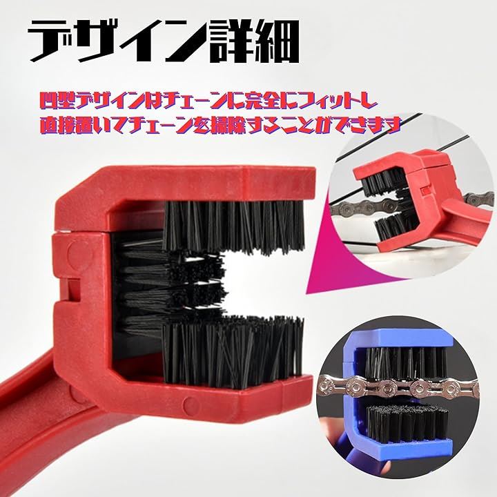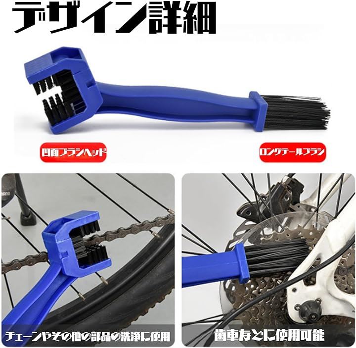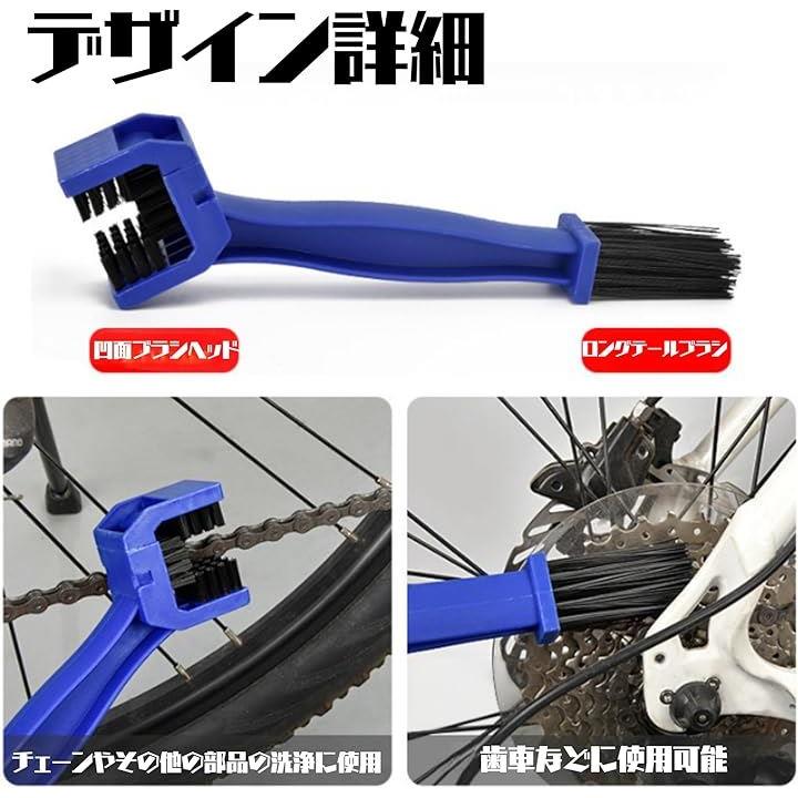 チェーンブラシ 自転車 バイク用 3面ブラシ メンテナンス 掃除工具 2本セット 洗浄 汚れ除去に最適