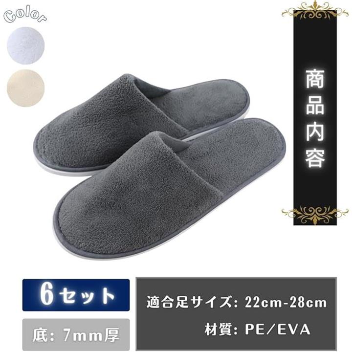 使い捨てスリッパ 室内 高級 ホテル仕様 来客用 厚底 前閉じ 個包装 6足セット