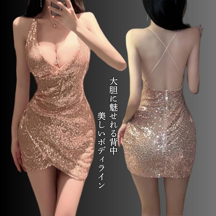 ドレス ミニ丈 セクシー キャミ ワンピース 胸元 キャバクラ レディース ホルターネック スパンコールドレス ラメ ナイト クラブ ボディコン