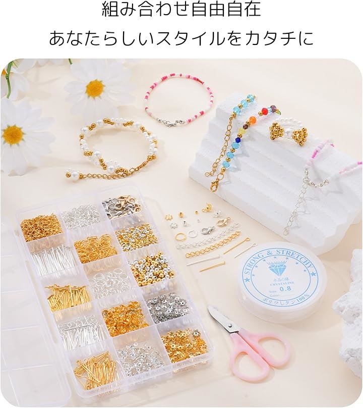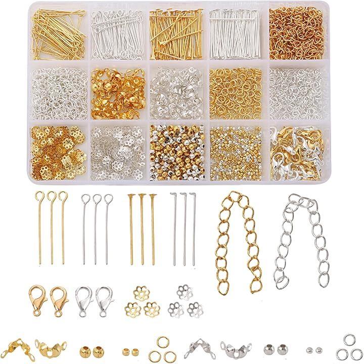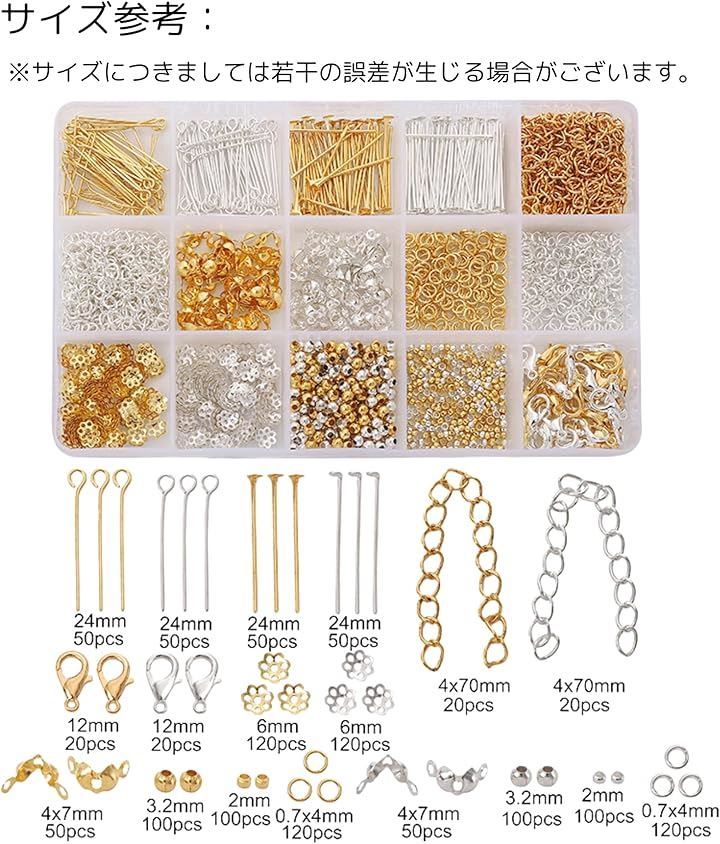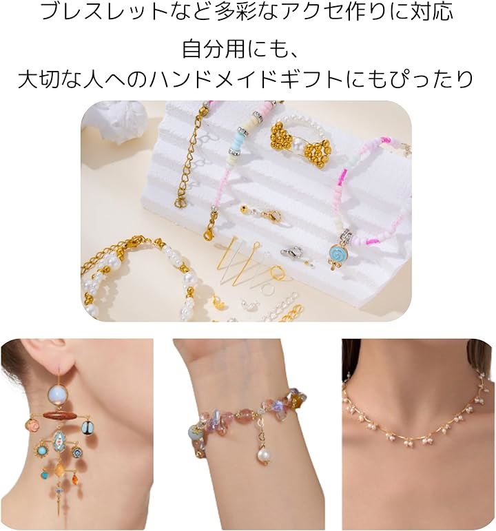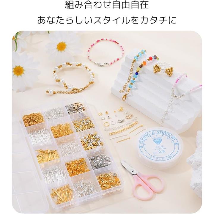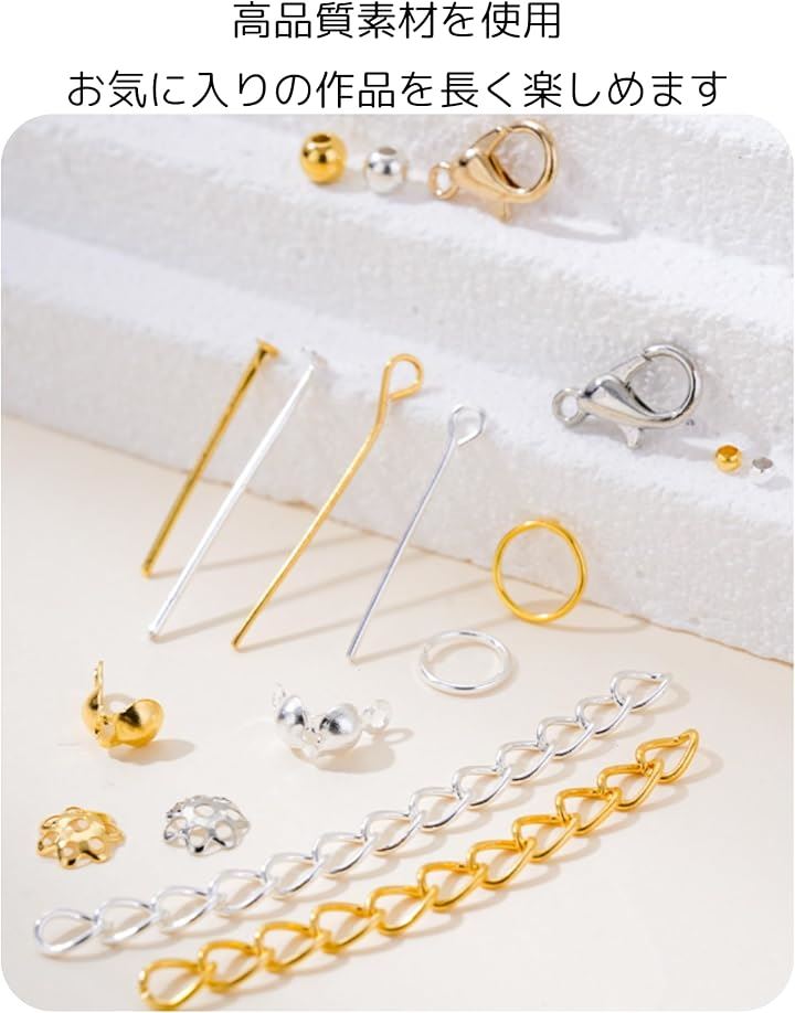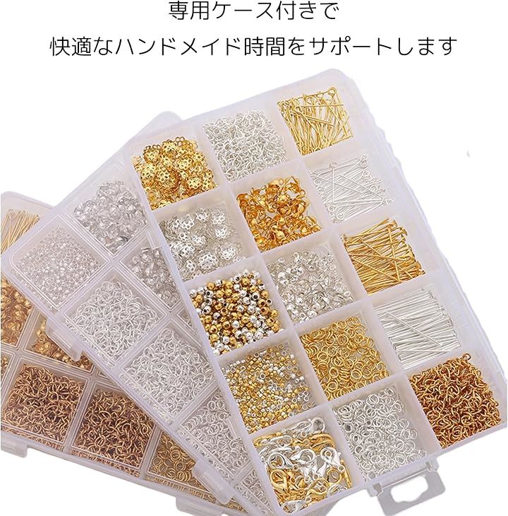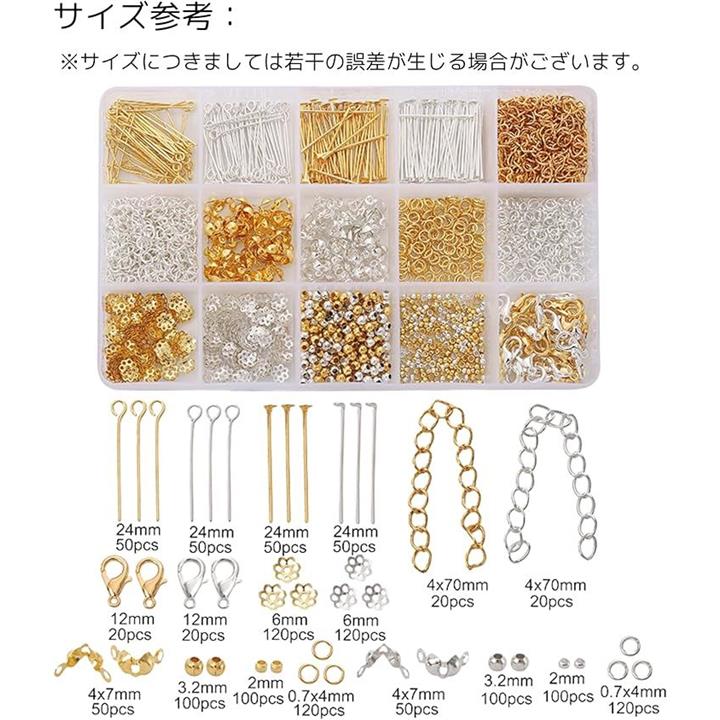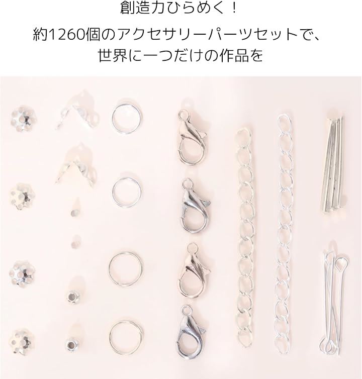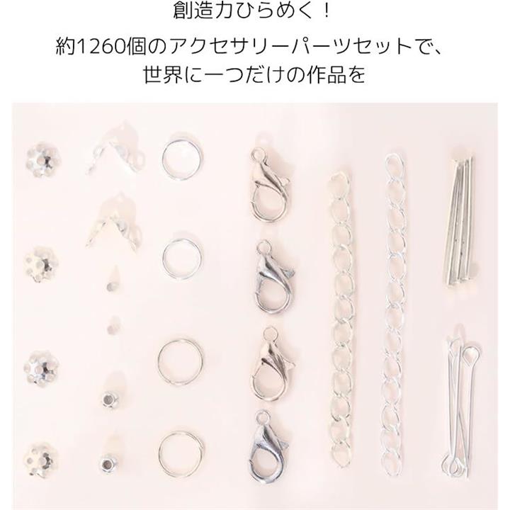 アクセサリーパーツセット 1260pcs ハンドメイド 金具 DIY用 大容量 手作り 収納ケース付き