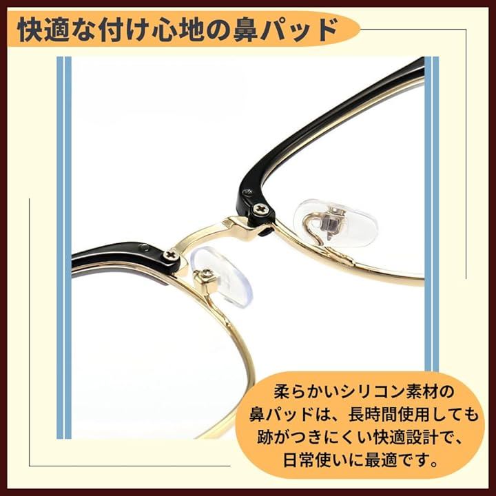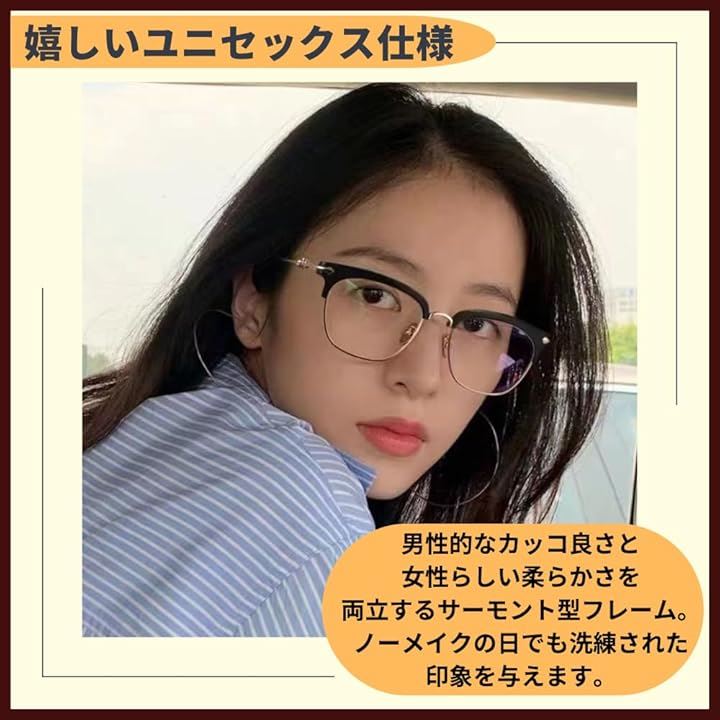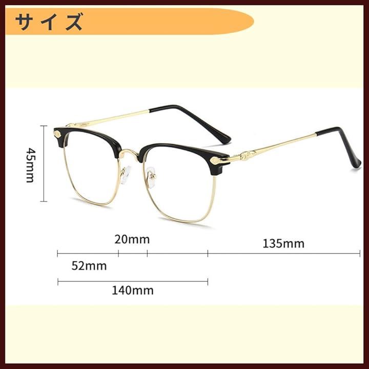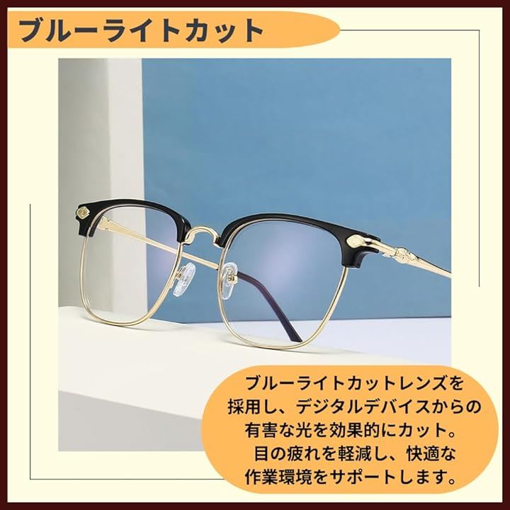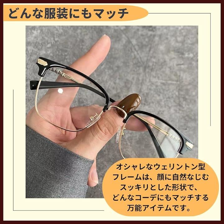 伊達メガネ ブルーライト カット ウェリントン お洒落 ブラック/ゴールド