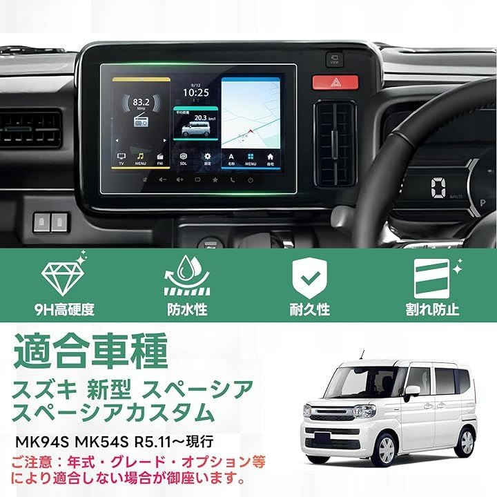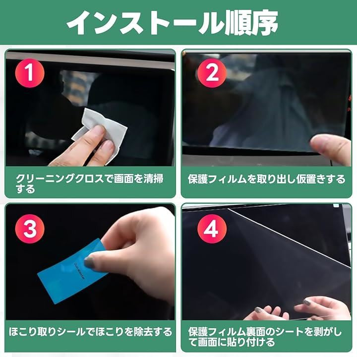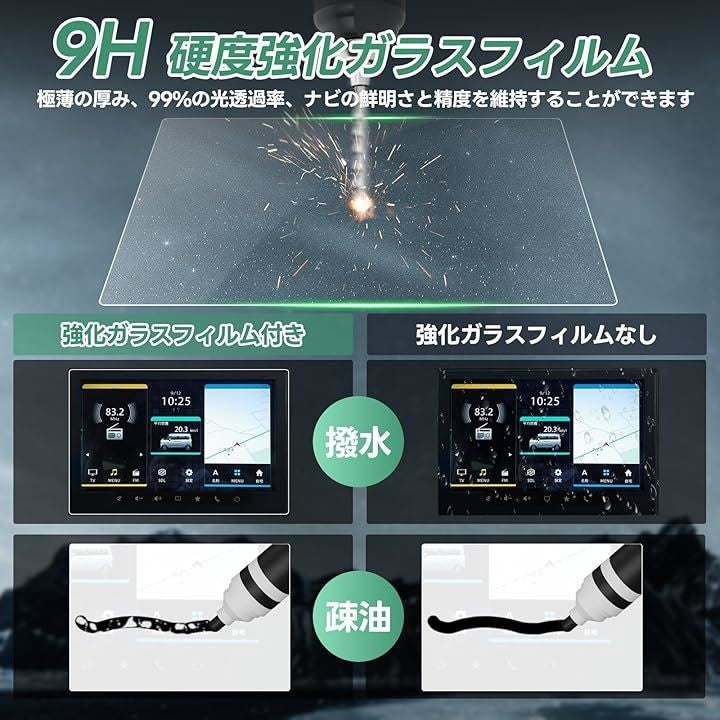 ガラス フィルム 9H硬度 自己吸着タイプ 汚れ防止 強化ガラス 車用液晶保護 貼り付け簡単