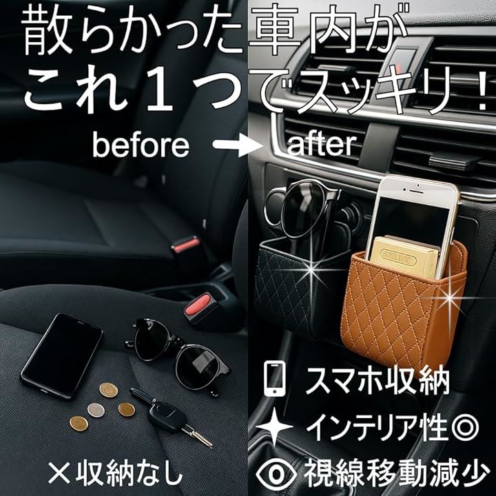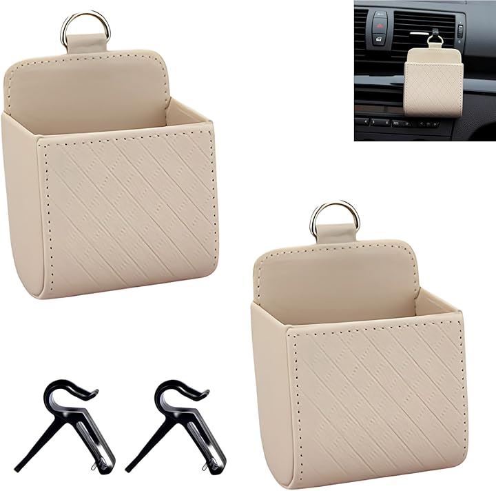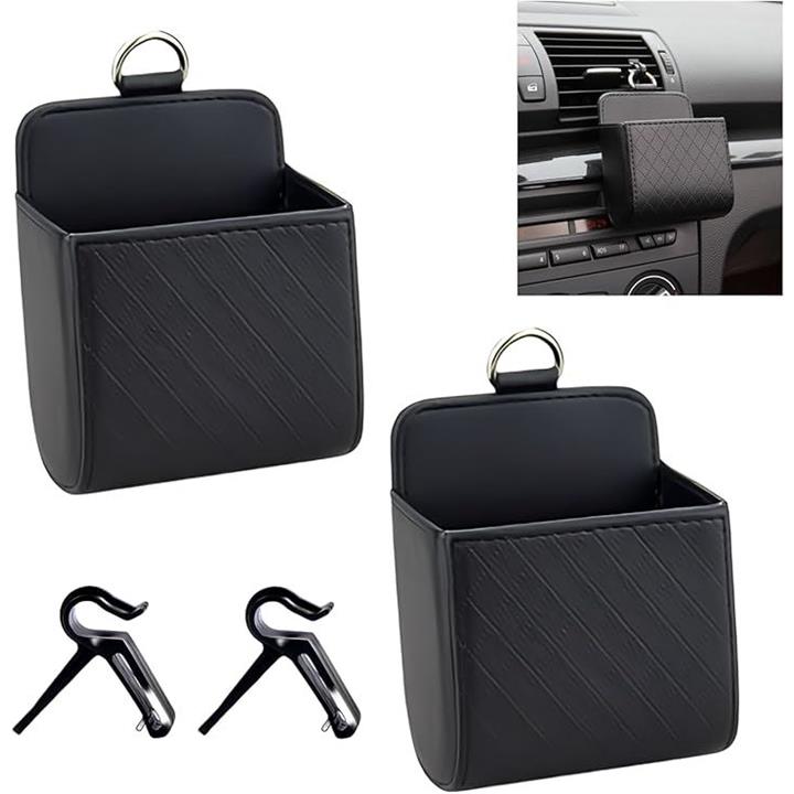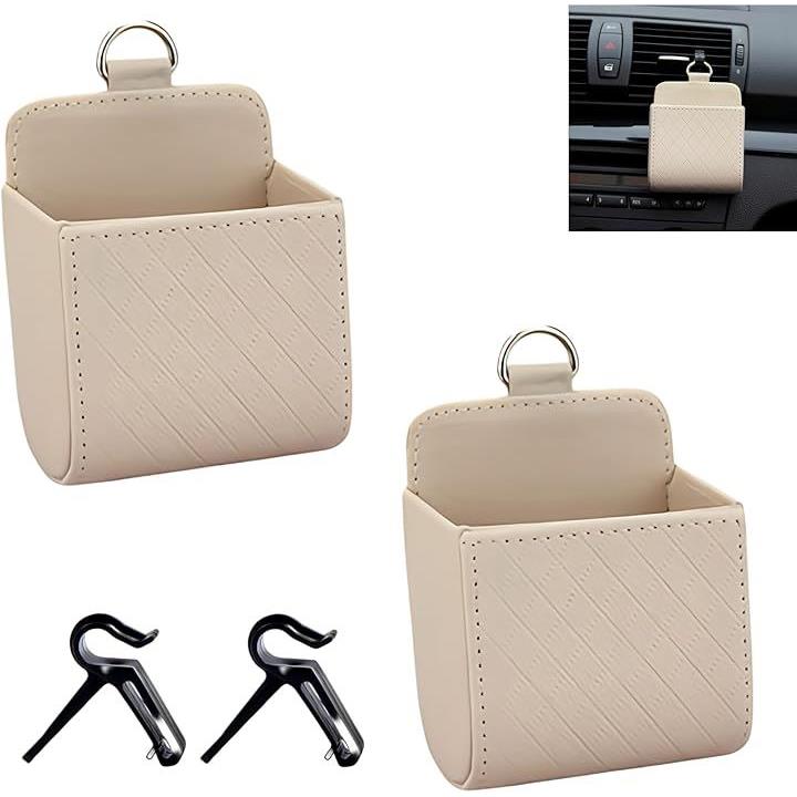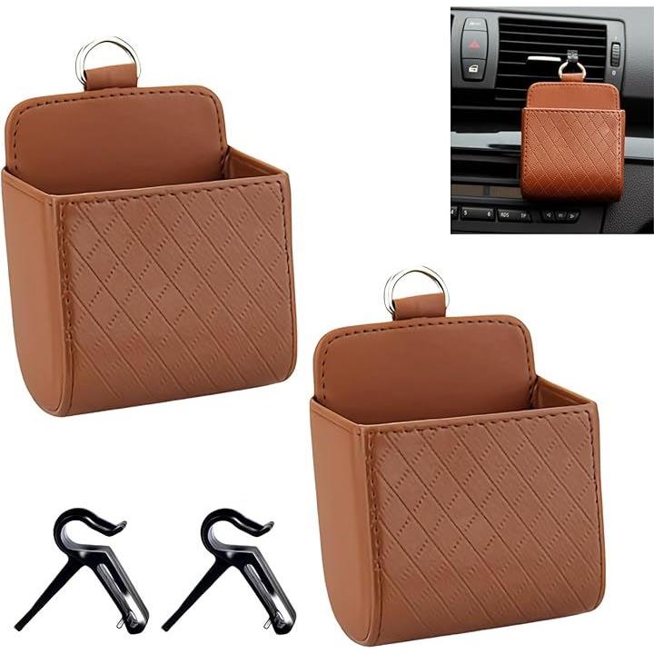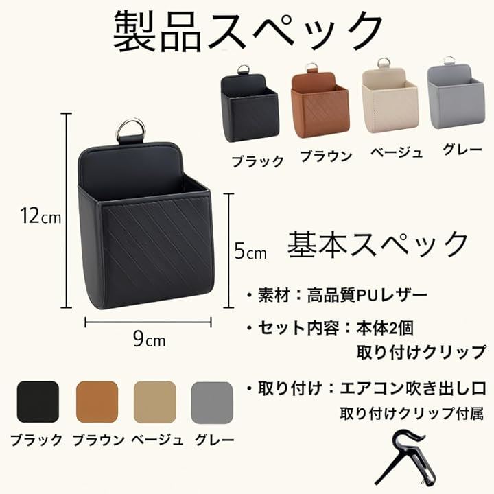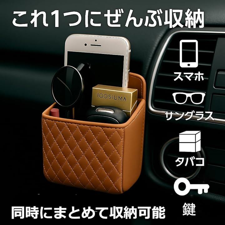 車用 小物入れ エアコン吹き出し口 収納ポケット PUレザー 2個セット カー用品 スマホホルダー 取付簡単 車内収納グッズ