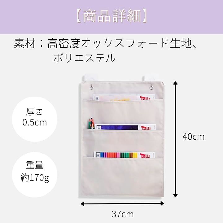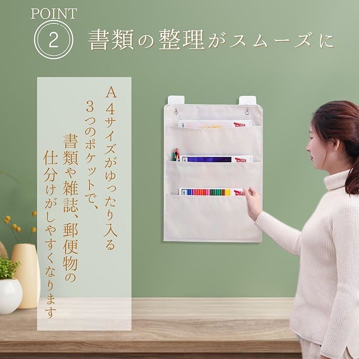 ウォールポケット 壁掛け 吊り下げ 書類収納 A4対応 3ポケット 布製 整理整頓 小物 雑誌 レター収納 クローゼット ドアフック対応 高密度生地 インテリア収納