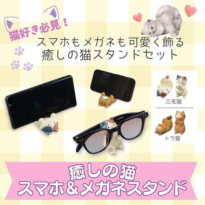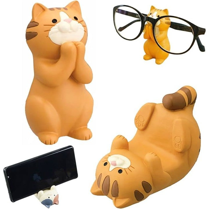 猫 スマホスタンド 卓上 スマホ立て 可愛い メガネスタンド メガネ置き インテリア 雑貨 置物 玄関 癒しグッズ デスク用品 ペン立て 小物整理 オブジェ 動物モチーフ